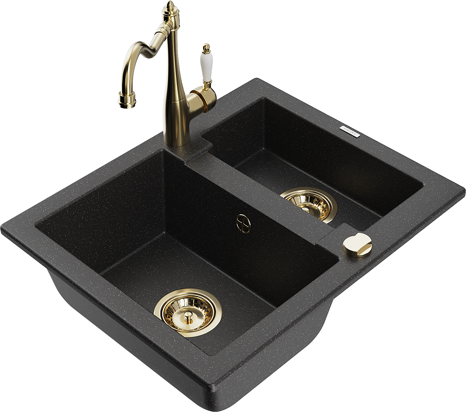 Mexen Carlos гранитна мивка 1,5-камерна с кухненски смесител Carla, черен/сребърен металик - 6518-73-670700-50