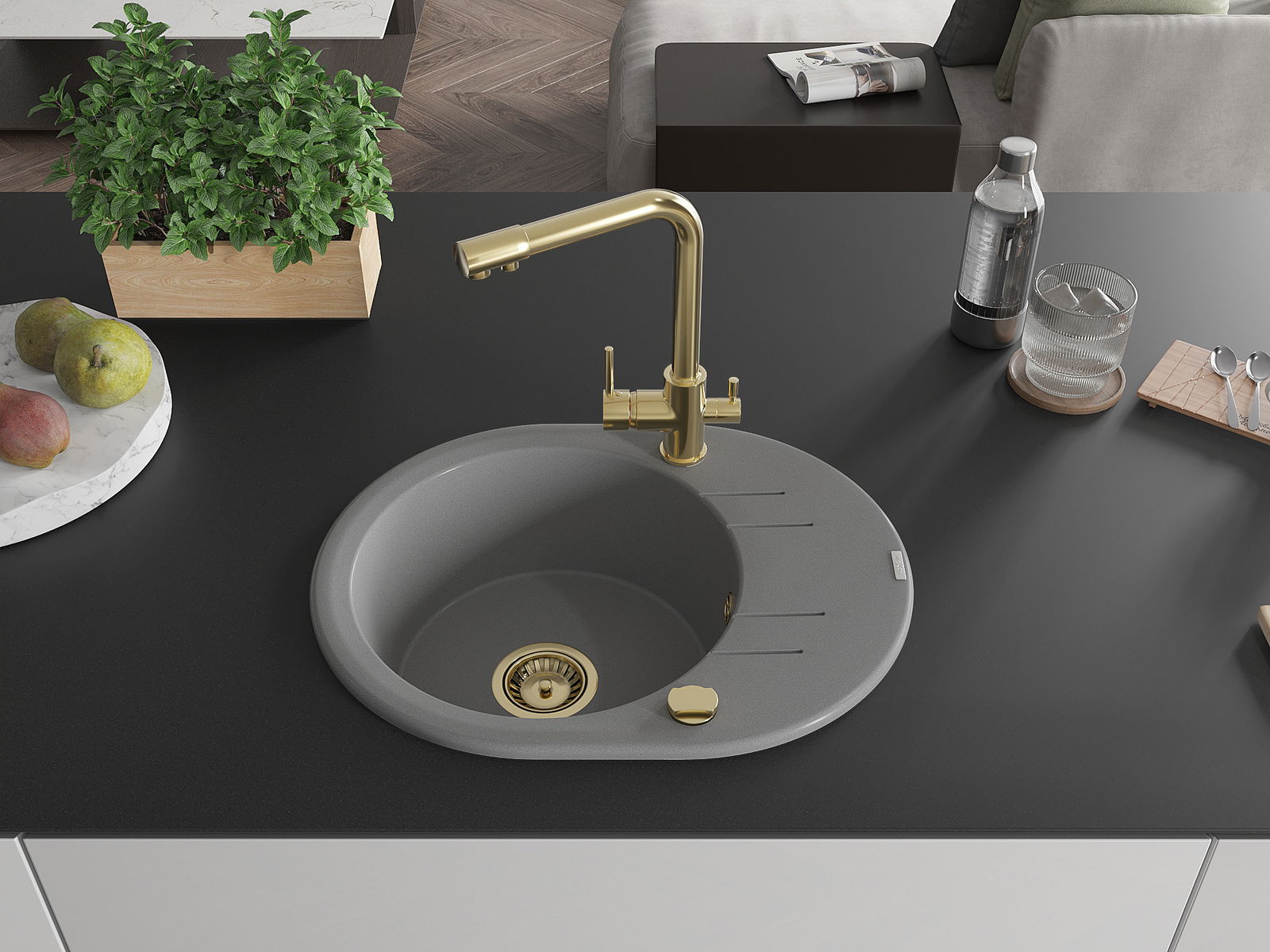 Мивката е направена от висококачествен гранит. Това е елегантно и най -вече практично допълнение към всяка кухня, независимо от нейния стил. Висококачествената и гранитна издръжливост осигуряват много години употреба.