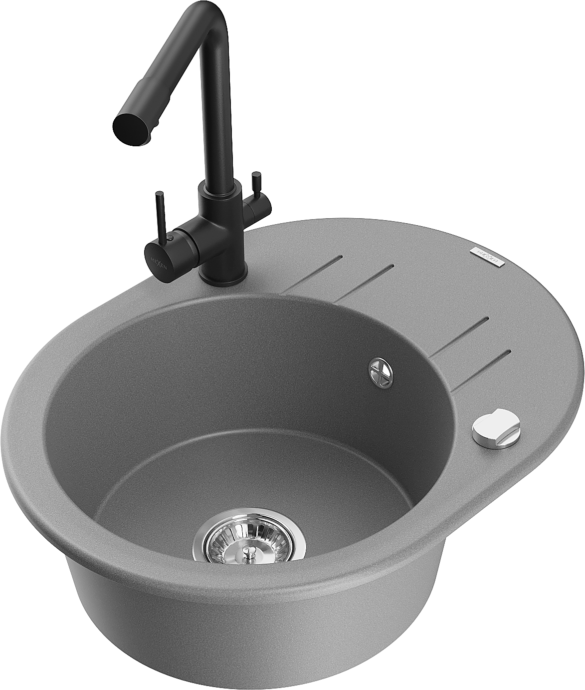 Mexen Kevin еднокоморен гранитен мивка със смесител и кухненски кран Duero, сив - 6517-71-671600-70