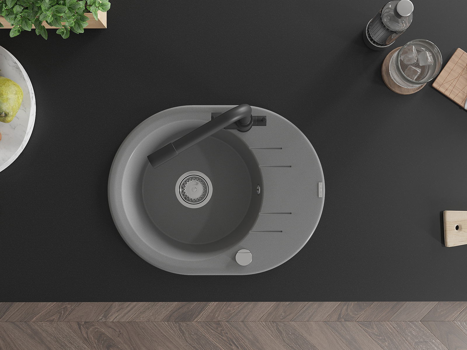 Мивката е направена от висококачествен гранит. Това е елегантно и най -вече практично допълнение към всяка кухня, независимо от нейния стил. Висококачествената и гранитна издръжливост осигуряват много години употреба.