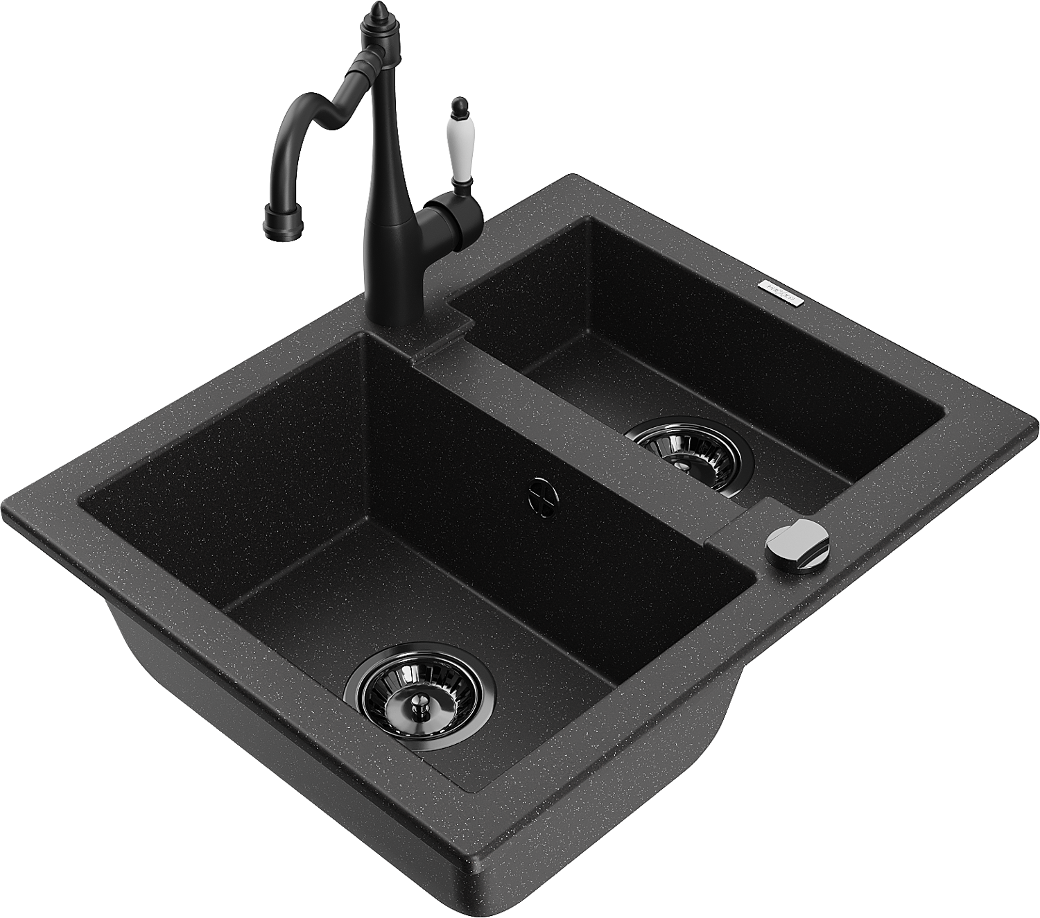 Mexen Carlos гранитна мивка 1,5-камерна с кухненски смесител Carla, черен/сребърен металик - 6518-73-670700-70-B