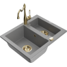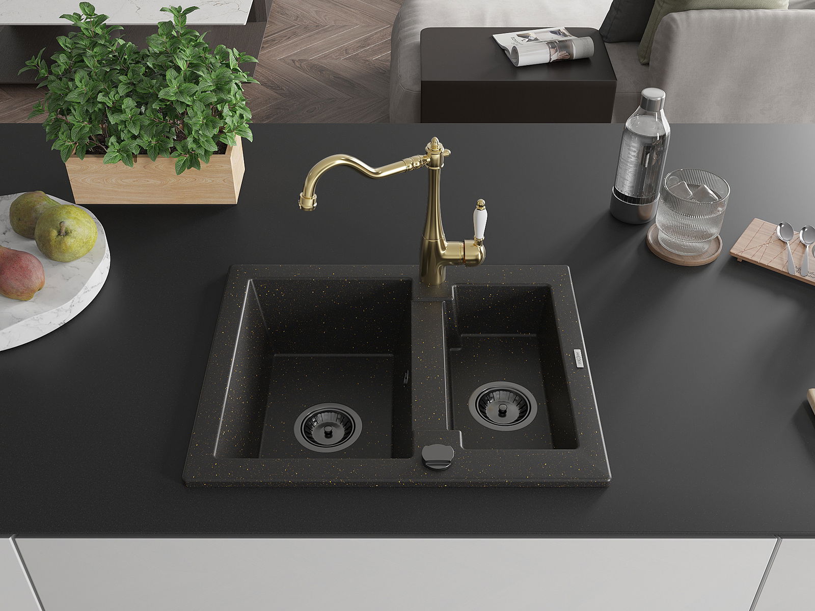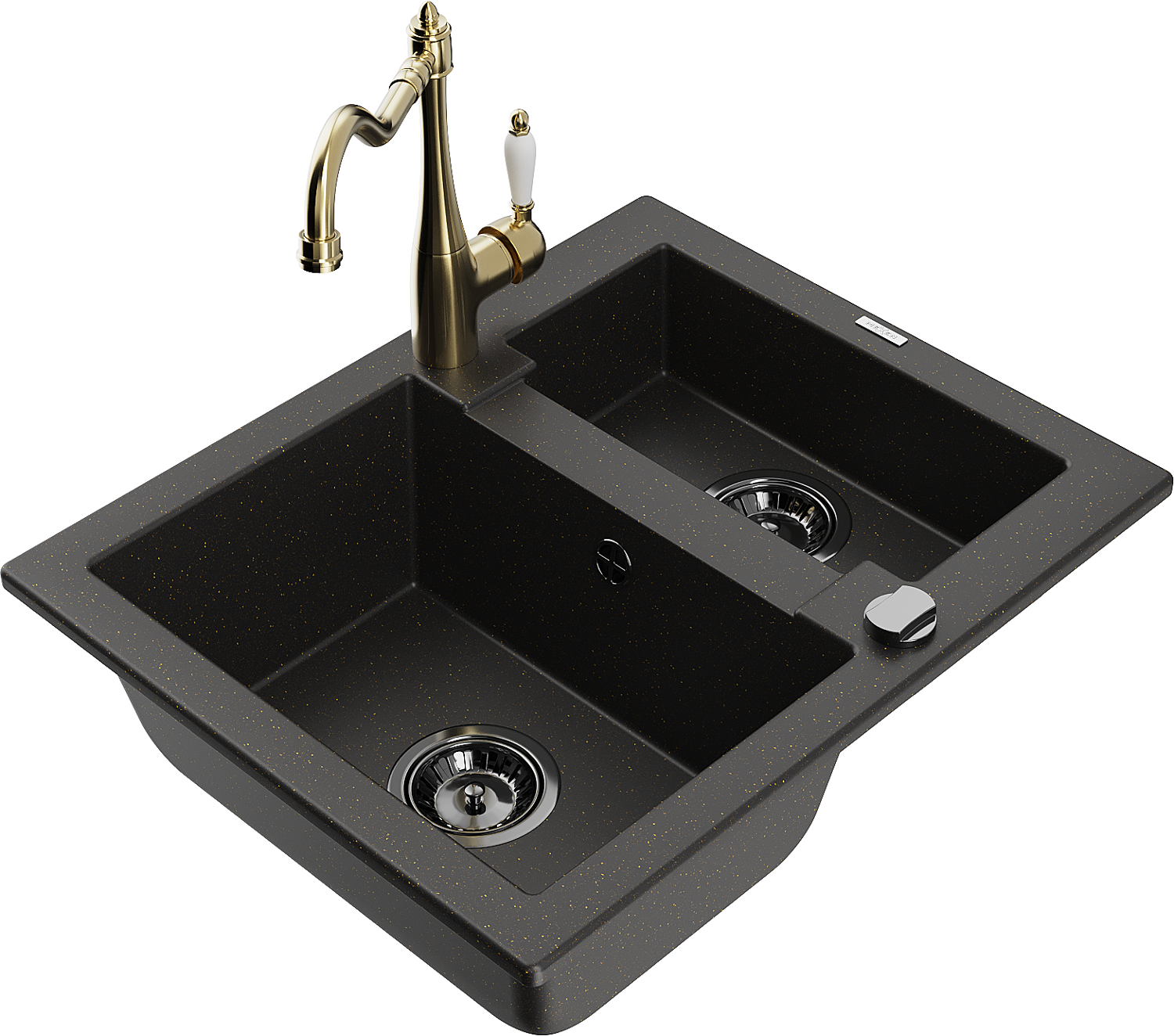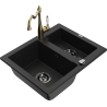Mexen Carlos гранитна мивка 1,5 отделения с кухненски смесител Carla, черен/златист металик - 6518-75-670700-50-B