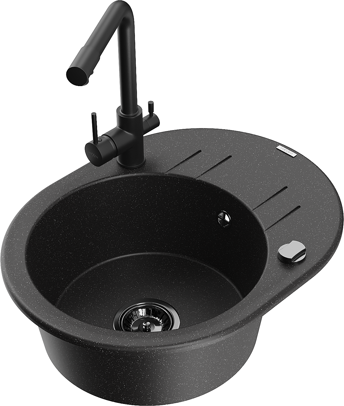 Mexen Kevin 1-коморов гранитен мивка с отцеждач и кухненски смесител Duero, черен/сребърен металик - 6517-73-671600-70-B