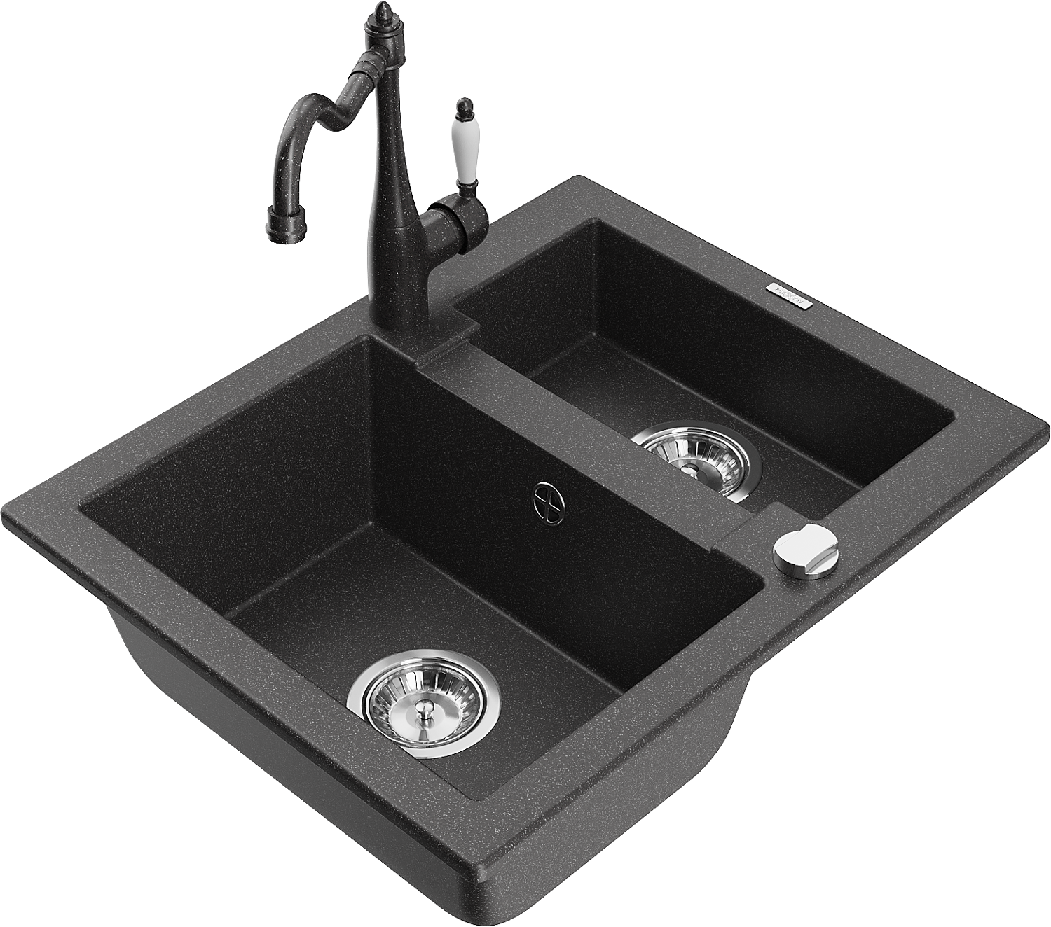Mexen Carlos гранитна мивка 1,5-коморна с кухненски смесител Carla, черен на
