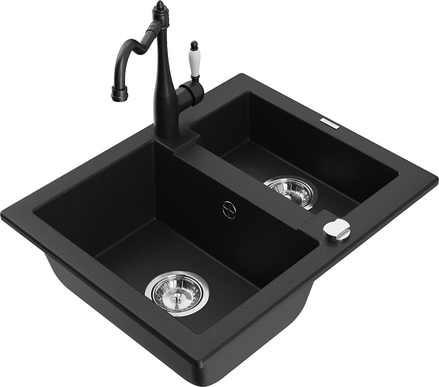 Mexen Carlos гранитна кухненска мивка с 1,5 камери със смесител Carla, черен - 6518-77-670700-70
