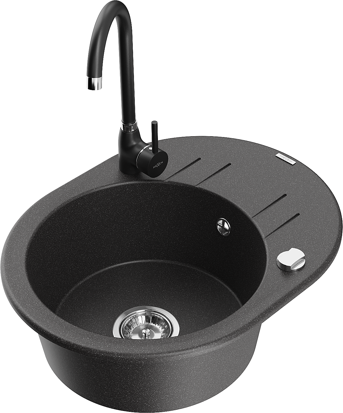 Гранитна мивка Mexen Kevin с 1 отделение, отцедник и кухненски смесител Telma, черен на капки - 6517-76-670200-70