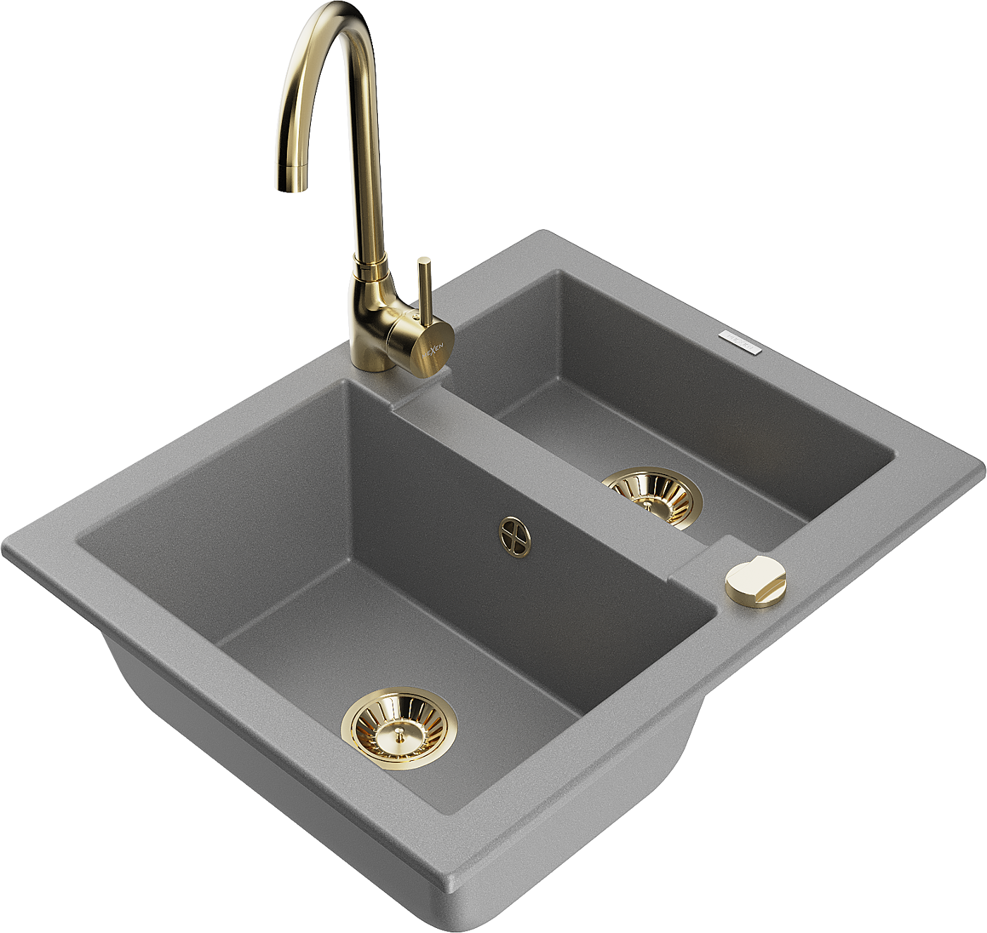 Мексен Карлос гранитна мивка 1,5-коморна с кухненски смесител Телма, сив - 6518-71-670200-50