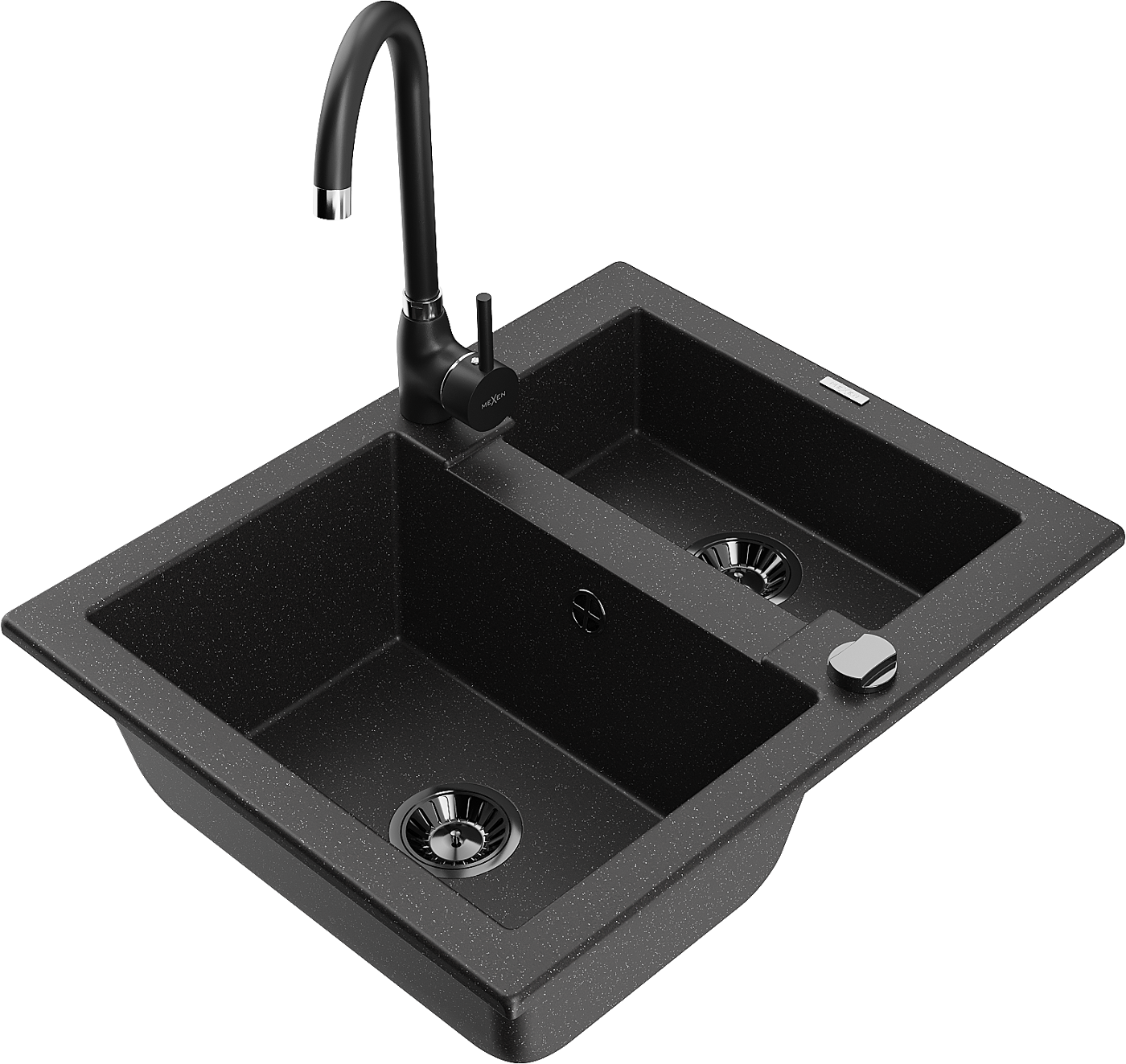 Mexen Carlos гранитна мивка 1,5-камерна с кухненски смесител Telma, черен/сребърен металик - 6518-73-670200-70-B
