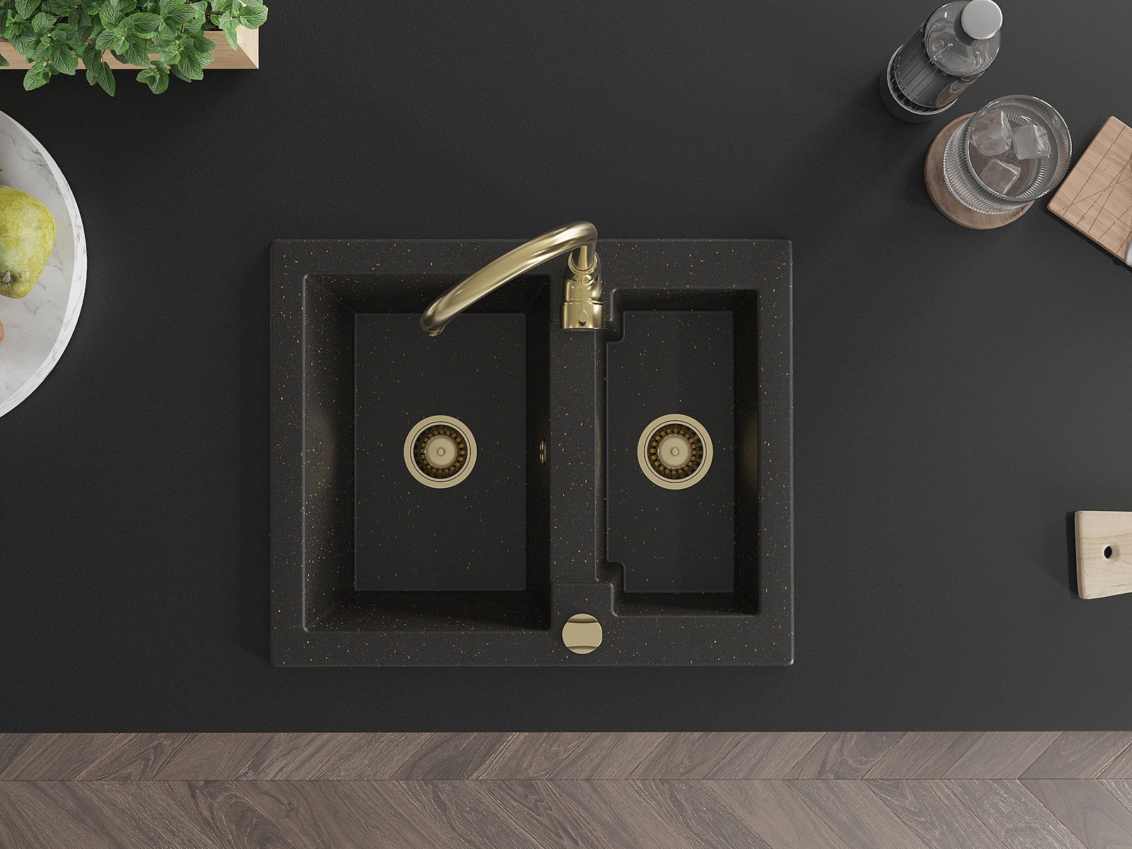Мивката е направена от висококачествен гранит. Това е елегантно и най -вече практично допълнение към всяка кухня, независимо от нейния стил. Висококачествената и гранитна издръжливост осигуряват много години употреба.