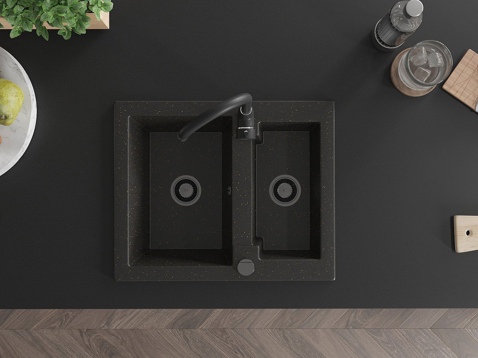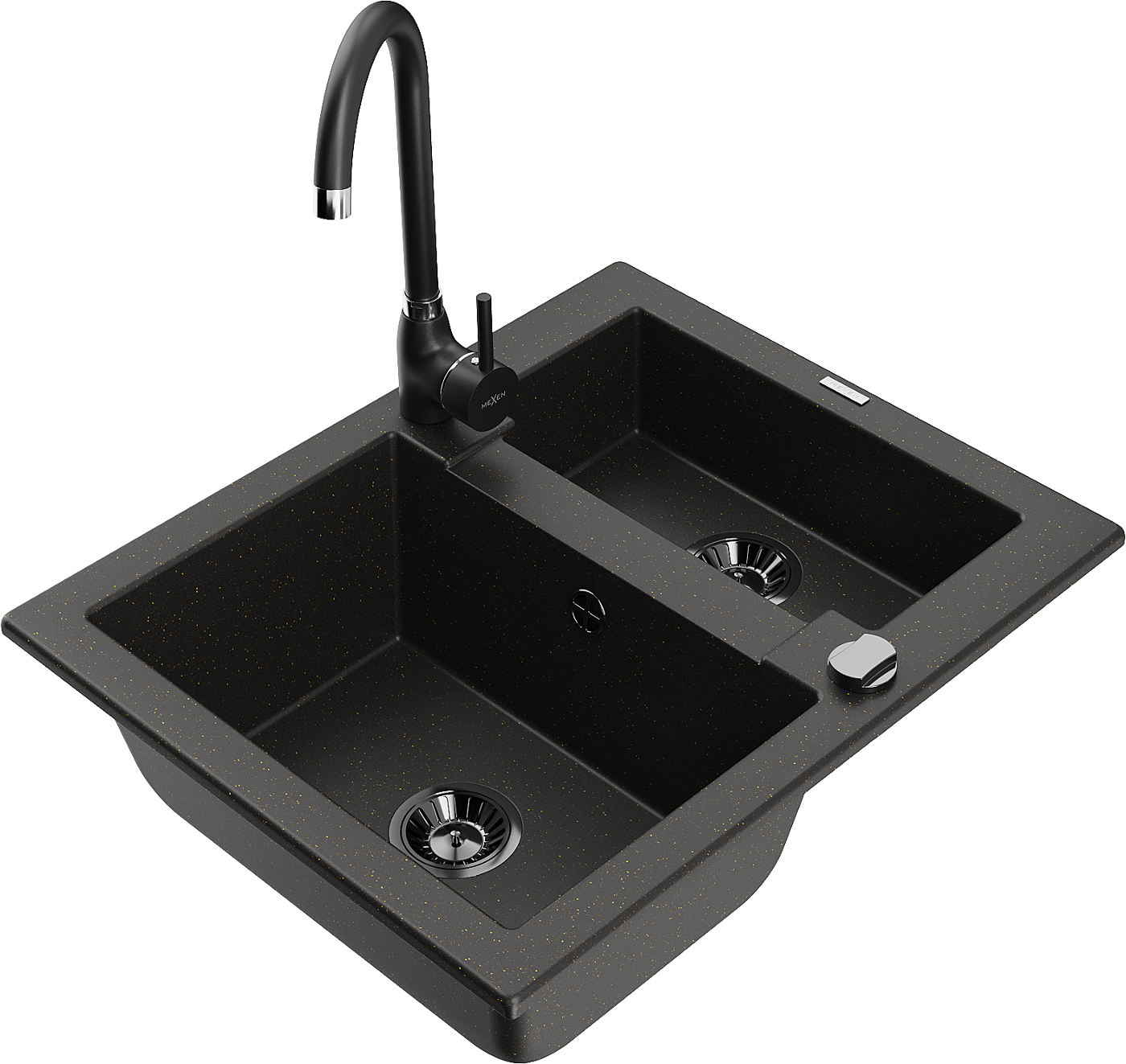 Mexen Carlos гранитна мивка с 1.5 камери и кухненски смесител Telma,