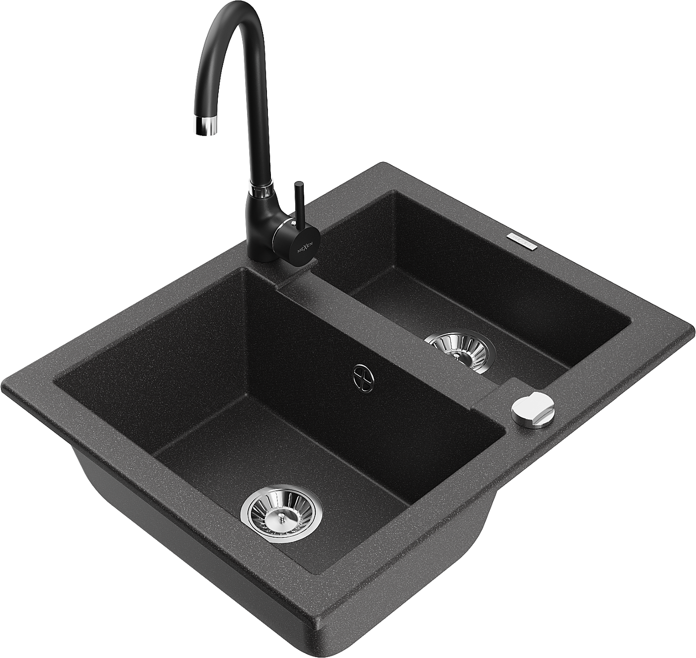 Mexen Carlos гранитна мивка 1,5 отделения с кухненски смесител Telma, черен накапчен - 6518-76-670200-70
