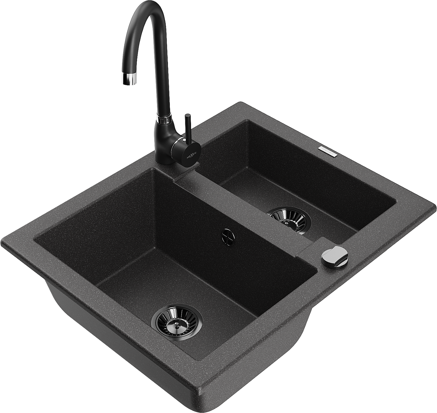 Mexen Carlos мивка от гранит с 1,5 камери с кухненски смесител Telma, черен на пръски - 6518-76-670200-70-B