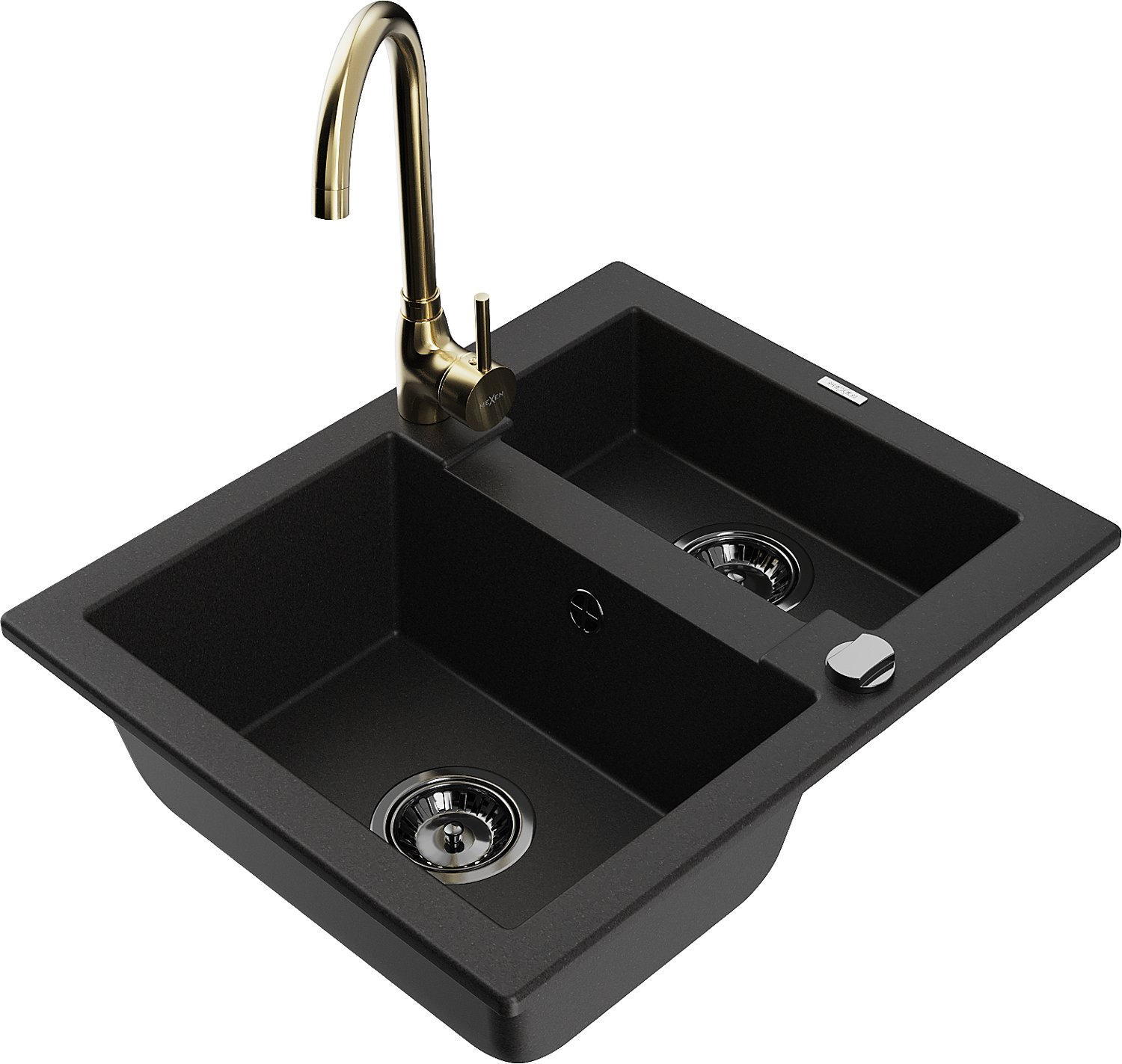 Гранитна мивка Mexen Carlos с 1,5 камери и кухненски смесител Telma, черен - 6518-77-670200-50-B