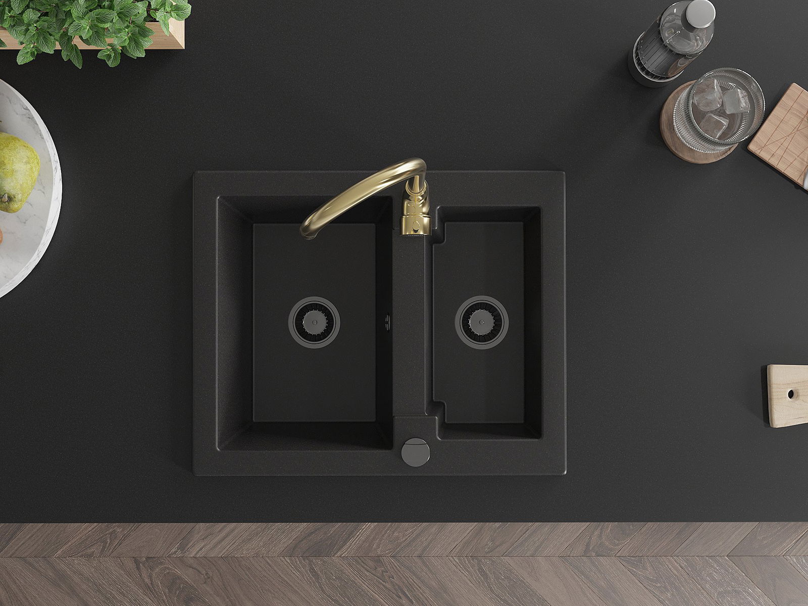 Mexen Carlos гранитна мивка с 1,5 камери с кухненски смесител Telma, черен