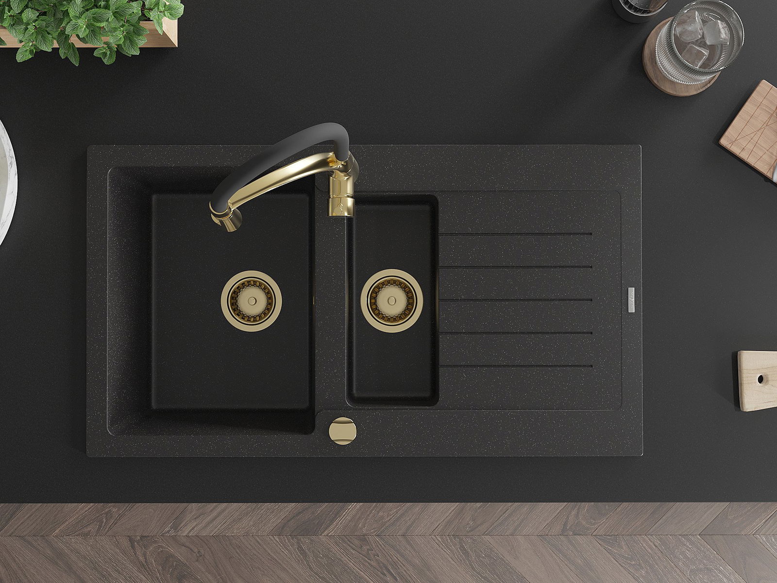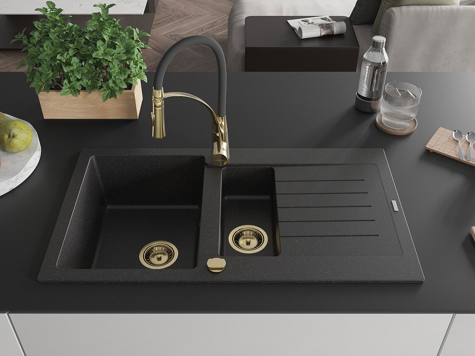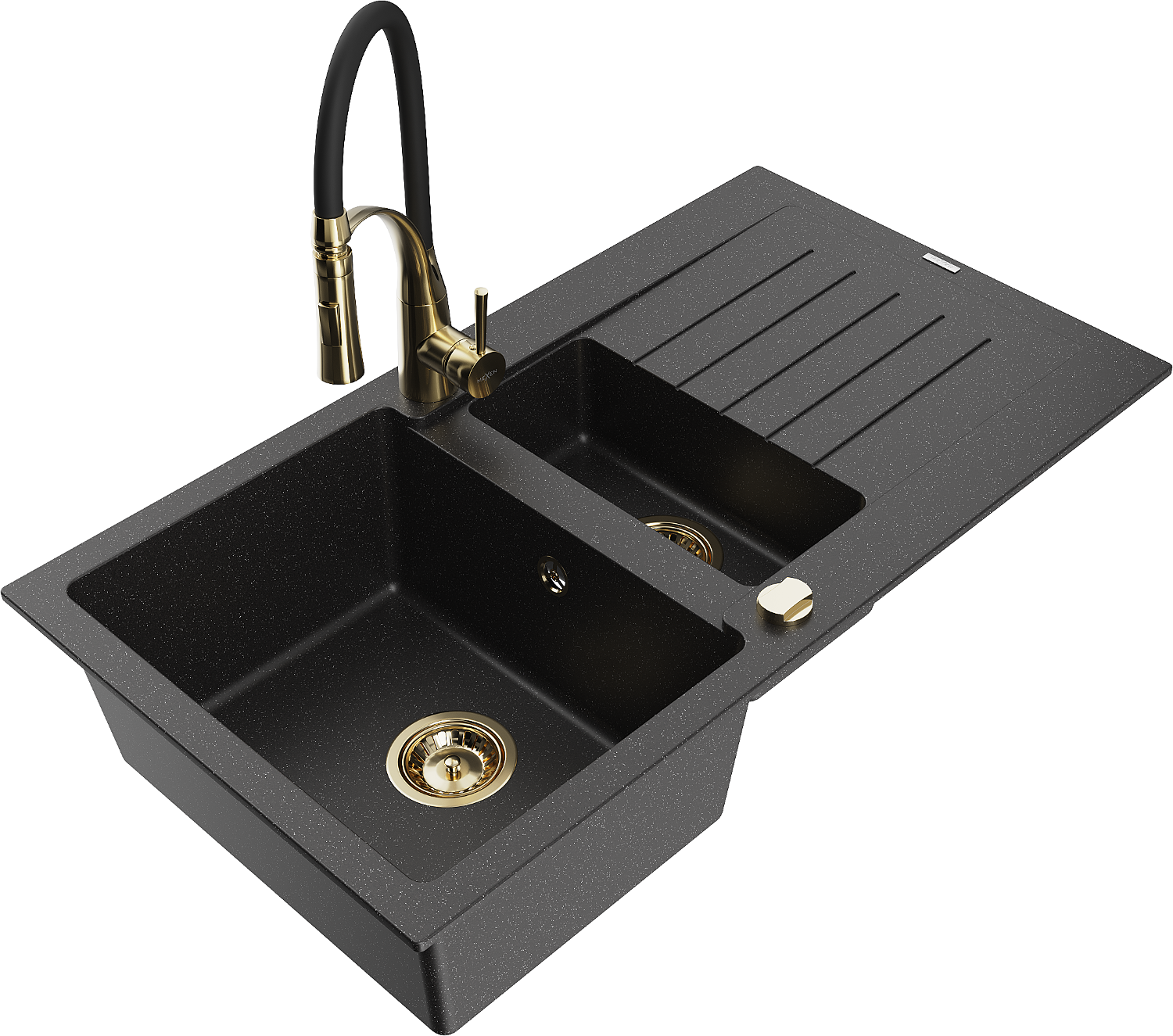 Mexen Matias гранитна мивка с 1,5 камери, с отцедник и кухненски смесител Aster,