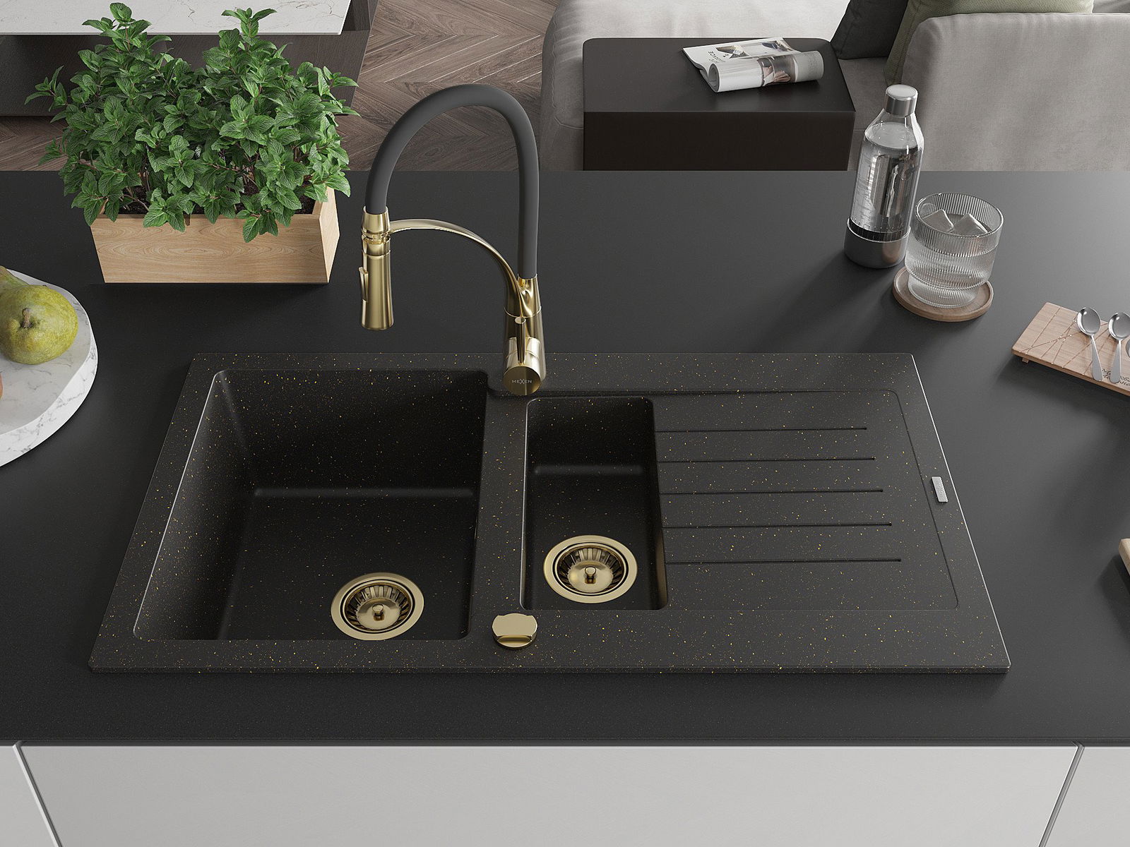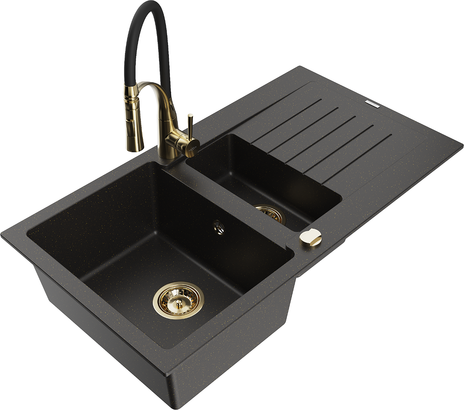 Mexen Matias гранитна мивка с 1,5 камери с отцедник и кухненски смесител Aster,