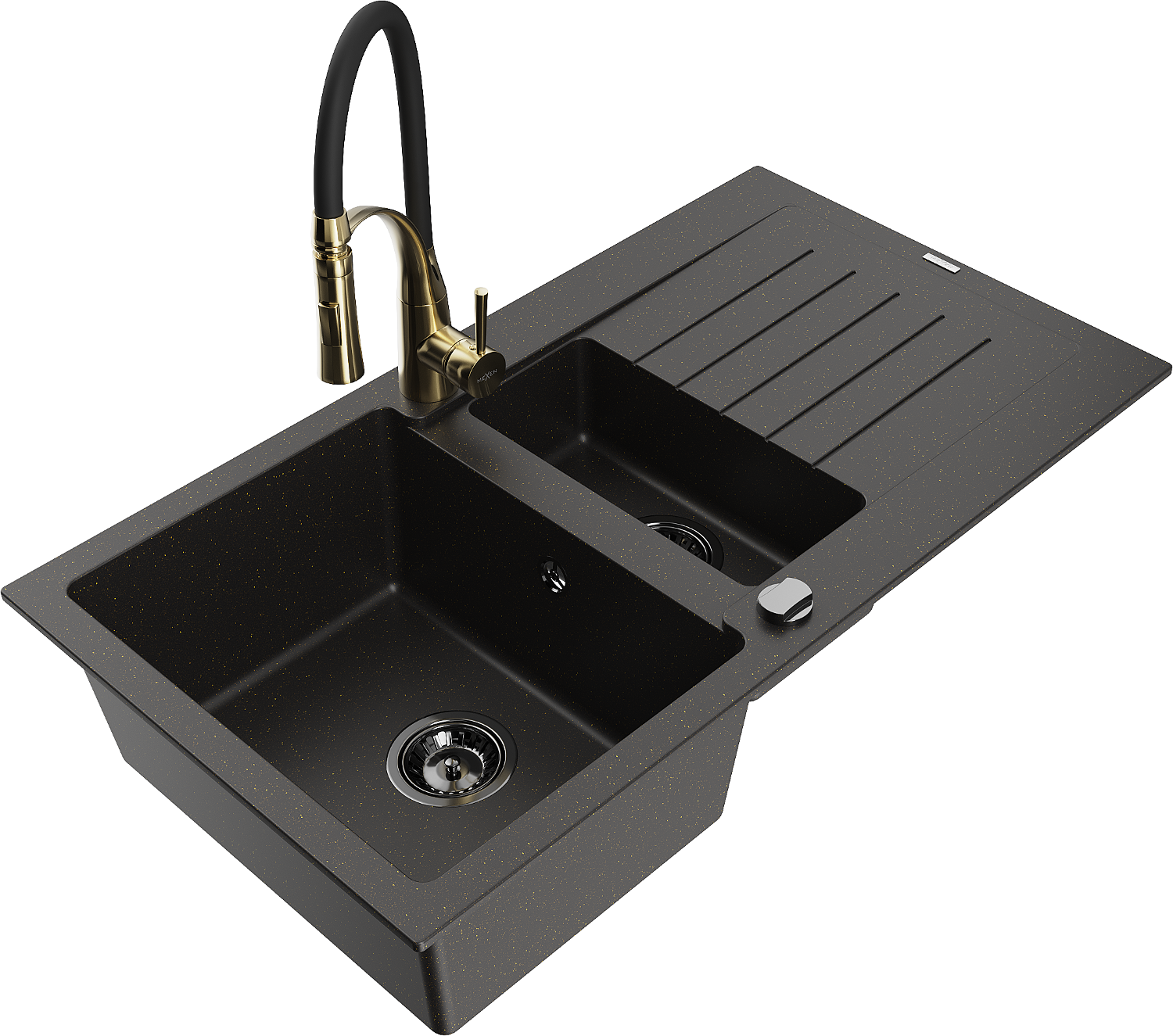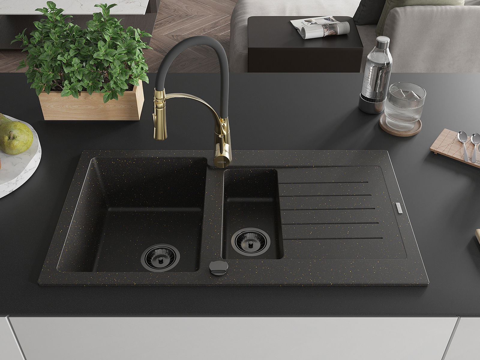Мексен Матиас гранитна мивка 1,5-камерна с отцедник и кухненски смесител Aster, черен/златист металик - 6502-75-73450-57-B