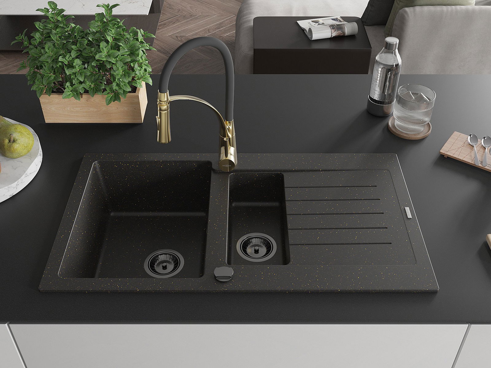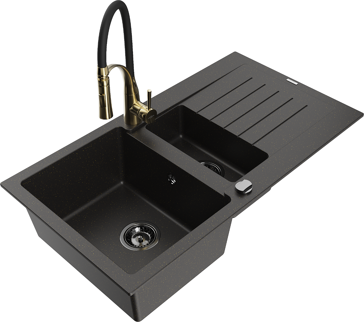 Mexen Matias гранитна мивка с 1,5 камери с отцедник и кухненски смесител Aster,
