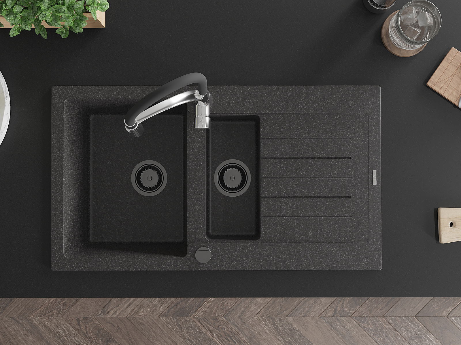 Мивката е направена от висококачествен гранит. Това е елегантно и най -вече практично допълнение към всяка кухня, независимо от нейния стил. Висококачествената и гранитна издръжливост осигуряват много години употреба.