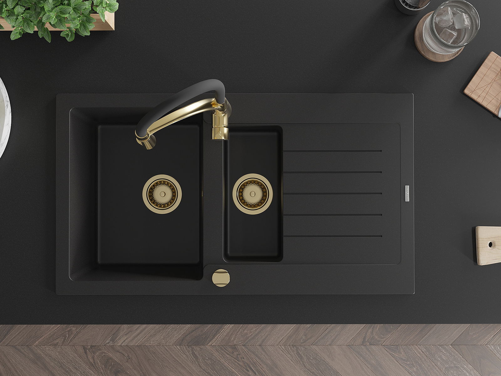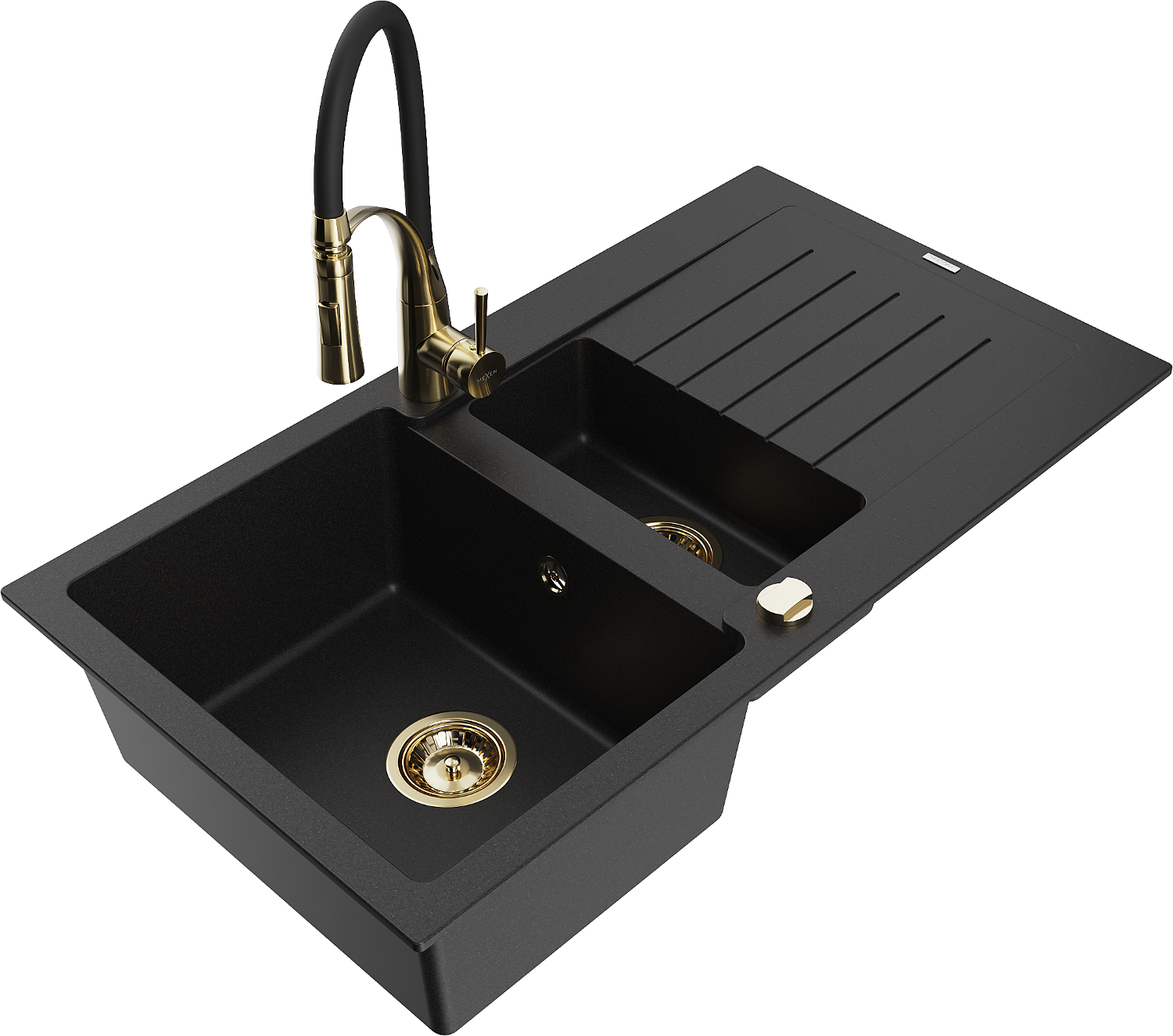 Mexen Matias гранитна мивка 1,5-коморна с отцедник и кухненски смесител Aster, черен - 6502-77-73450-57-G