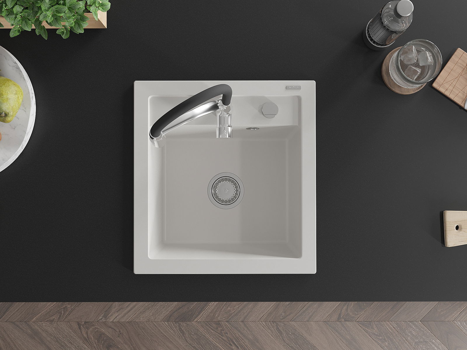Защитаната от добре повърхност на мивката инхибира проникването на мръсотия във вътрешните му структури. Благодарение на това поддържането на мивката чиста е още по -лесно и повърхността му запазва естетиката си за по -дълго.