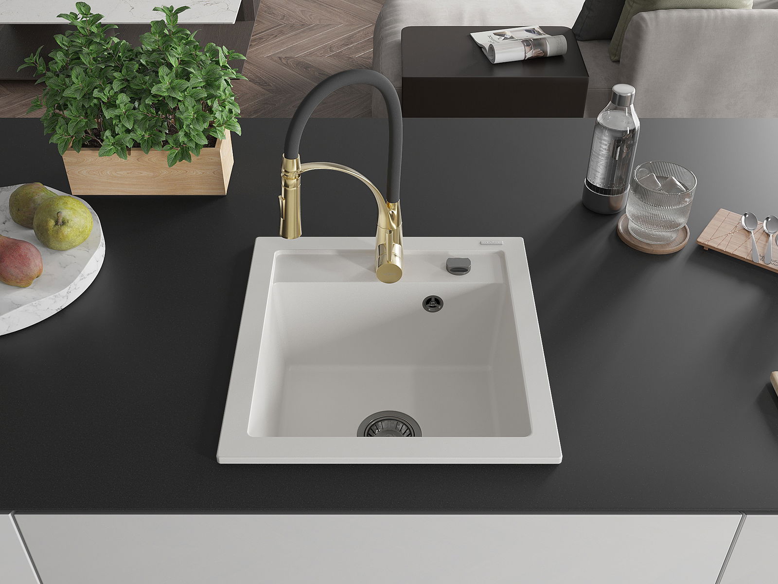 Мивката е направена от висококачествен гранит. Това е елегантно и най -вече практично допълнение към всяка кухня, независимо от нейния стил. Висококачествената и гранитна издръжливост осигуряват много години употреба.