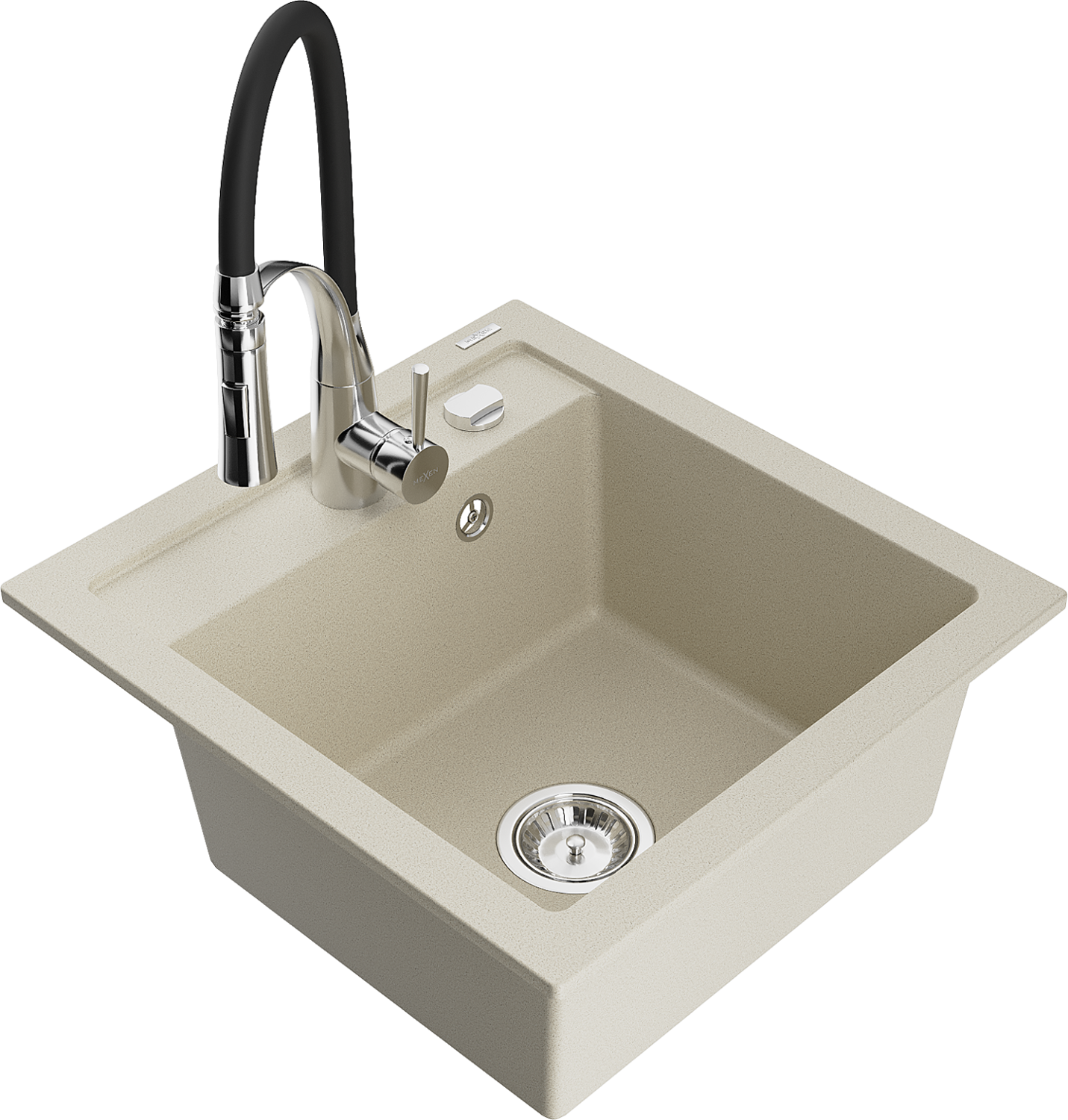 Mexen Vito гранитна кухненска мивка с 1 корито с кухненски смесител Aster, бежов - 6503-69-73450-07