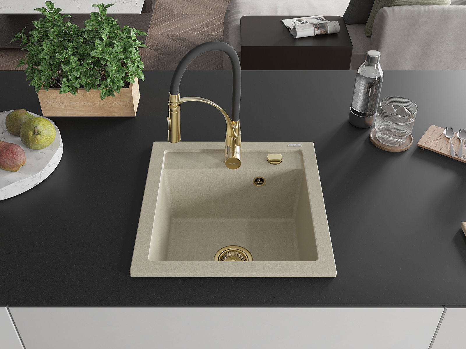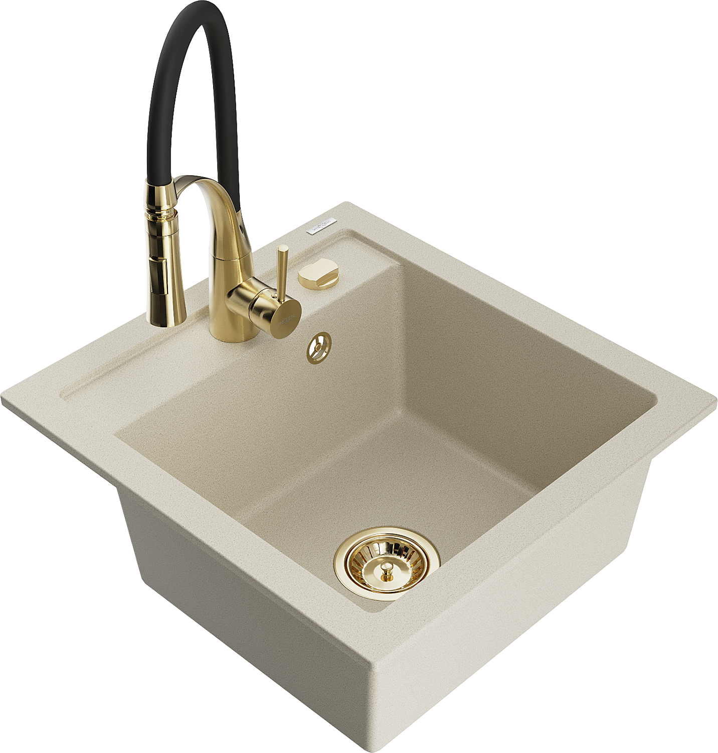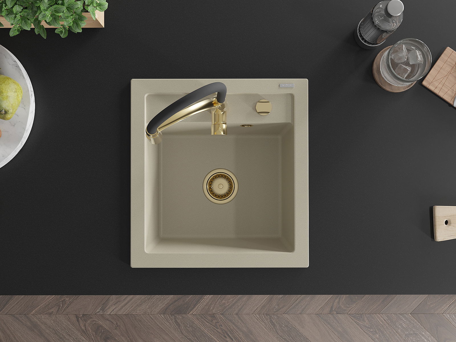 Mexen Vito гранитна мивка с едно корито с кухненски смесител Aster, бежов - 6503-69-73450-57-G