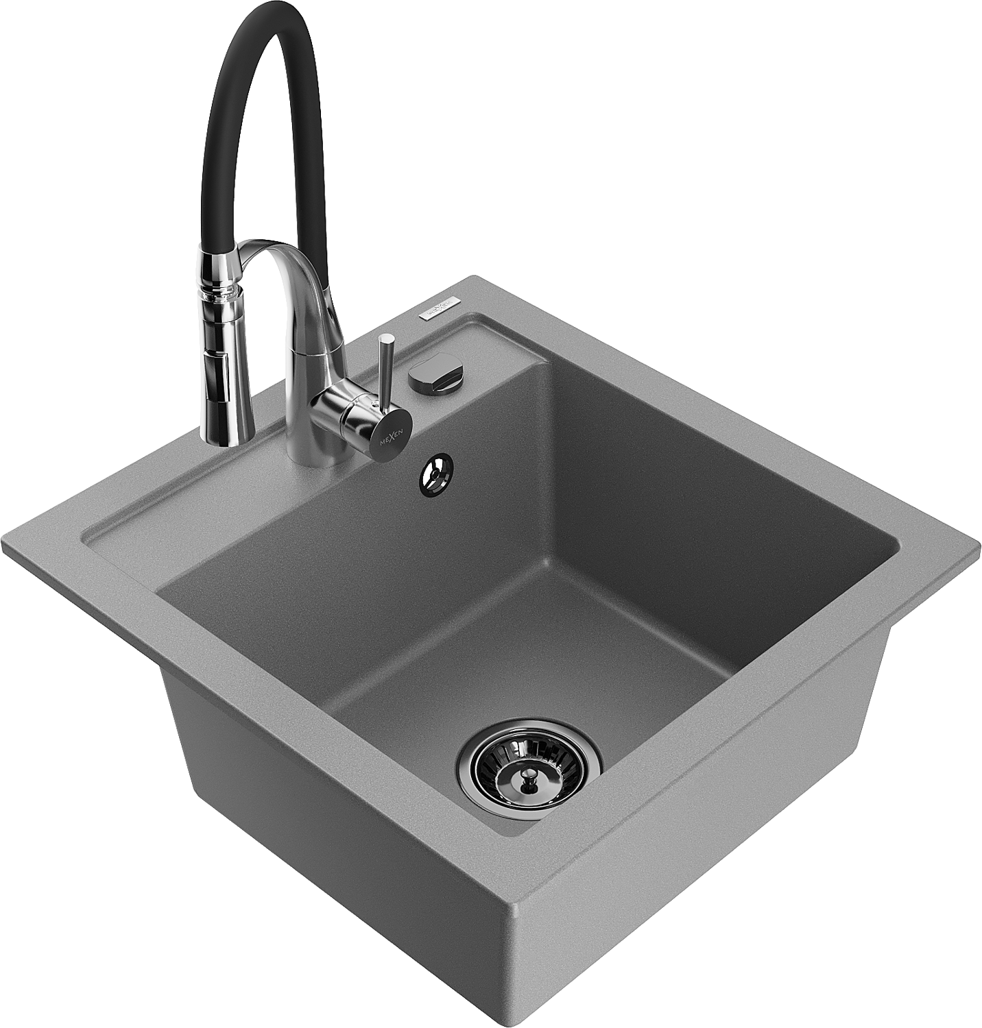 Мексен Вито гранитна кухненска мивка с 1 корито и кухненски смесител Aster, сив - 6503-71-73450-07-B
