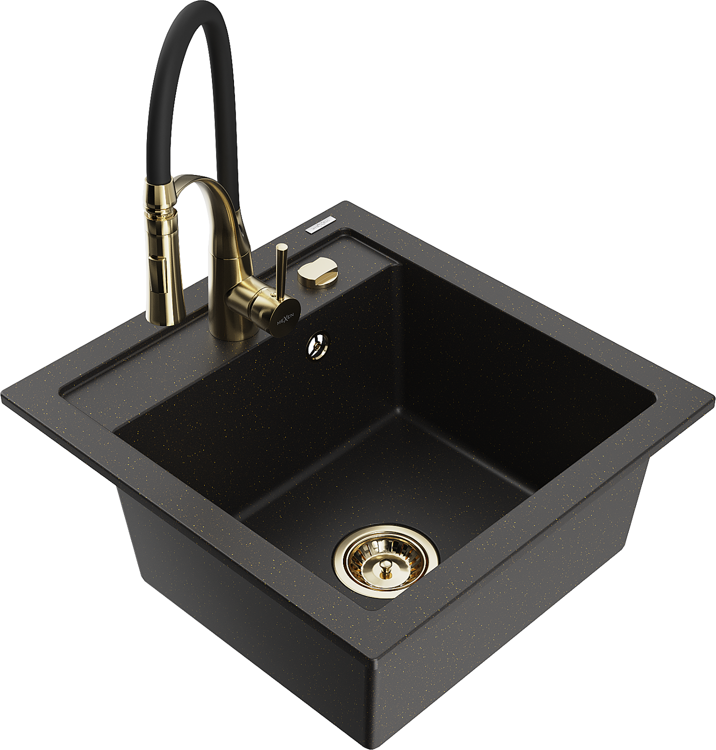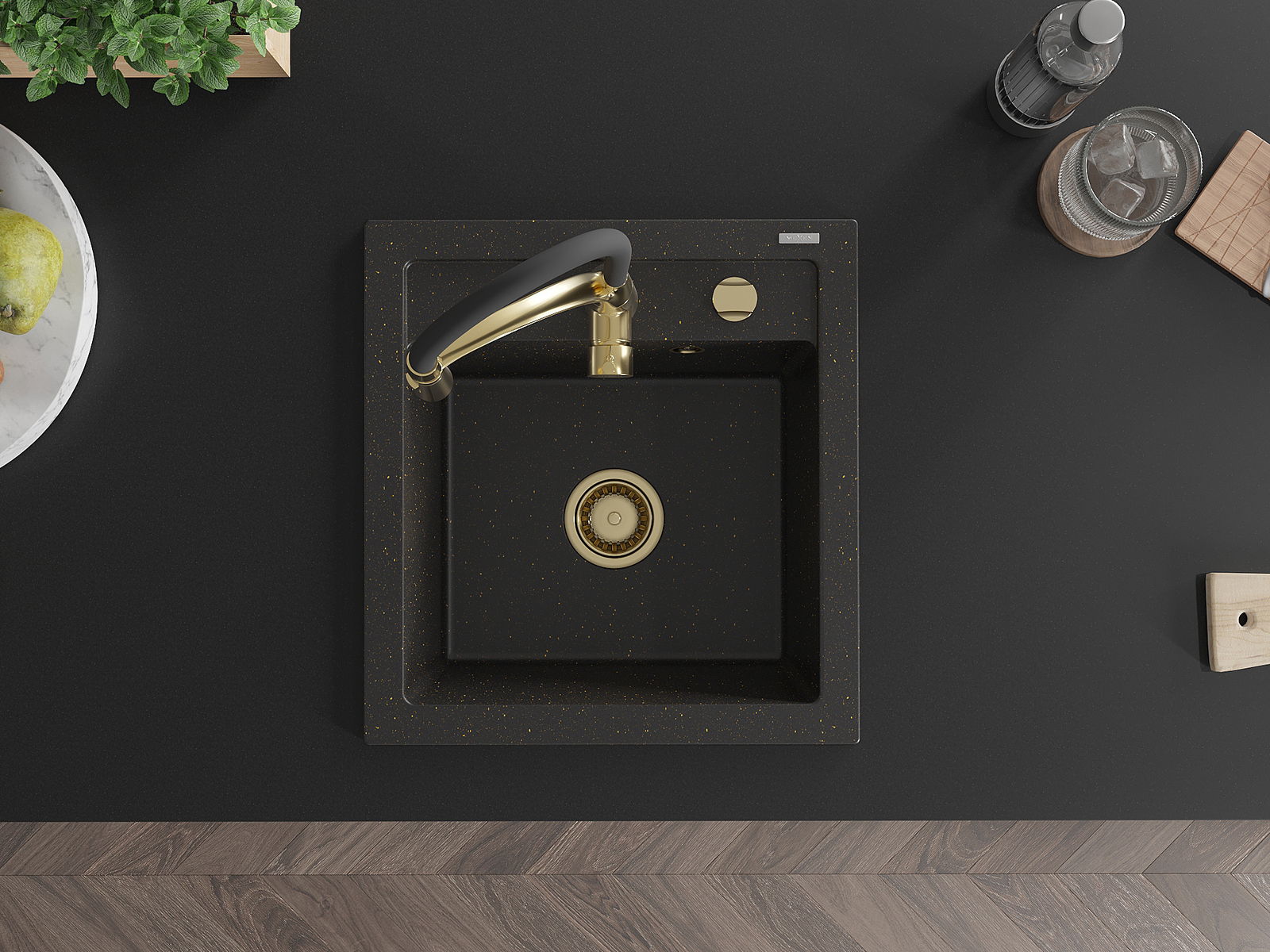 Mexen Vito мивка от гранит с 1 отделение с кухненски смесител Aster, черен/златист металик- 6503-75-73450-57-G