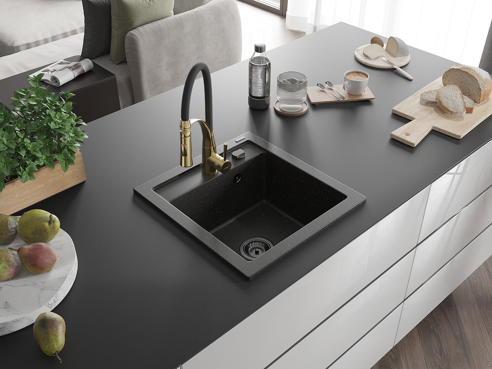 Мивката е направена от висококачествен гранит. Това е елегантно и най -вече практично допълнение към всяка кухня, независимо от нейния стил. Висококачествената и гранитна издръжливост осигуряват много години употреба.