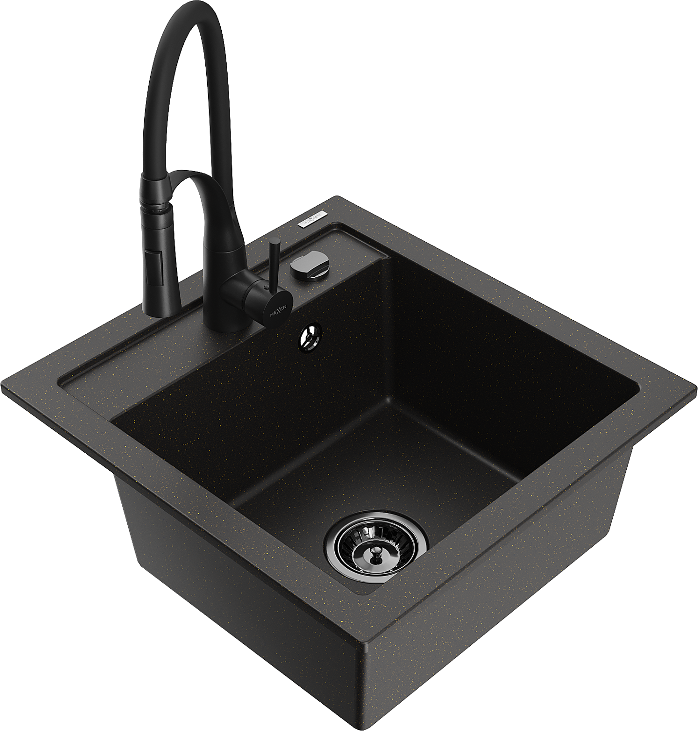 Mexen Vito гранитна мивка с 1 отделение с кухненски смесител Aster, черен/златен металик- 6503-75-73450-70-B