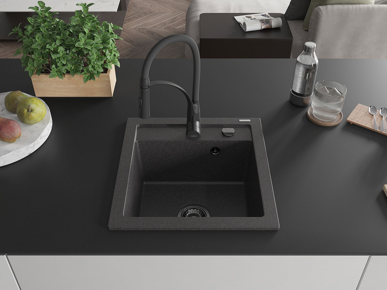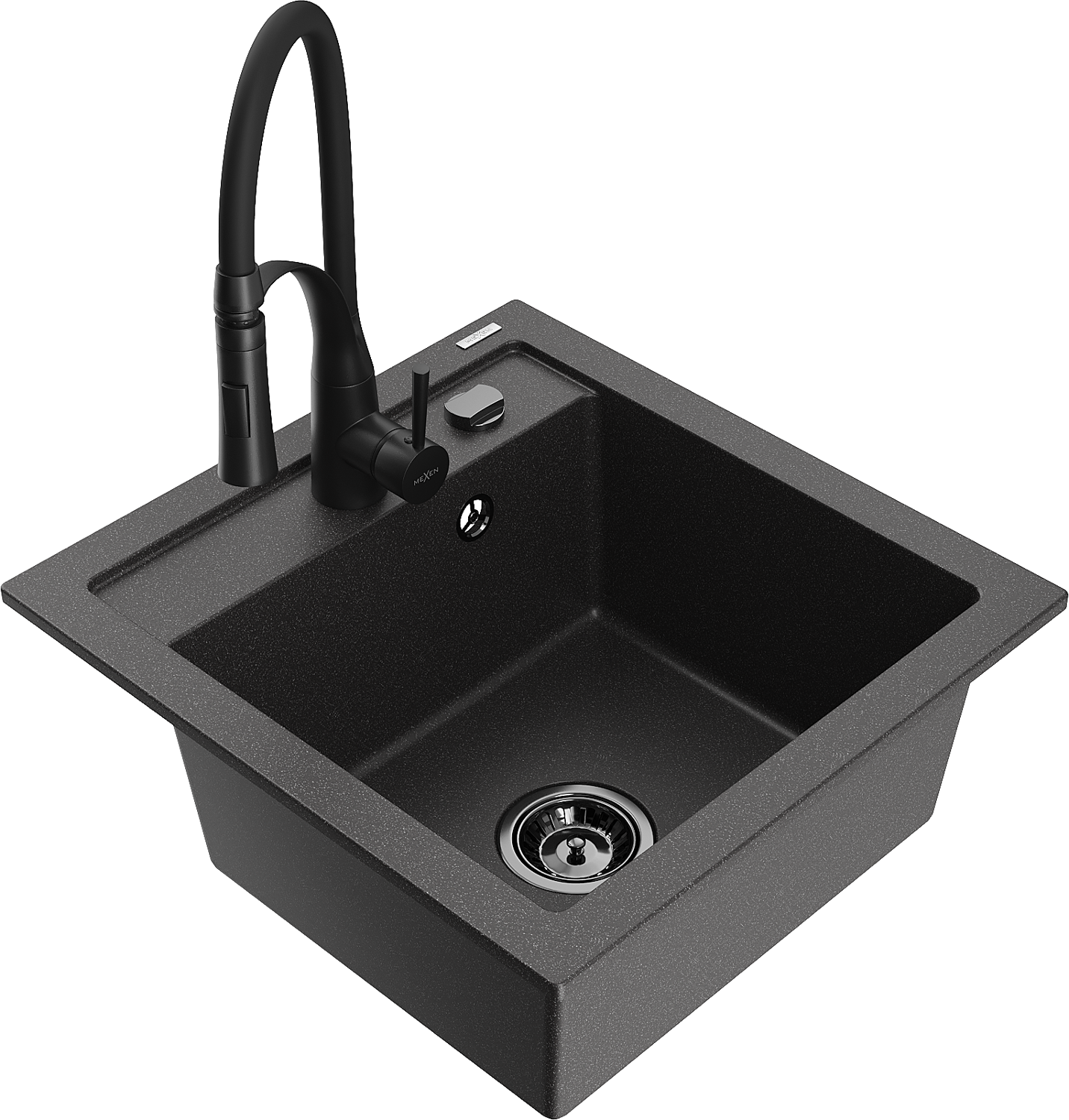 Mexen Vito кухненска мивка от гранит с 1 отделение с кухненски смесител Aster, черен с пръски - 6503-76-73450-70-B