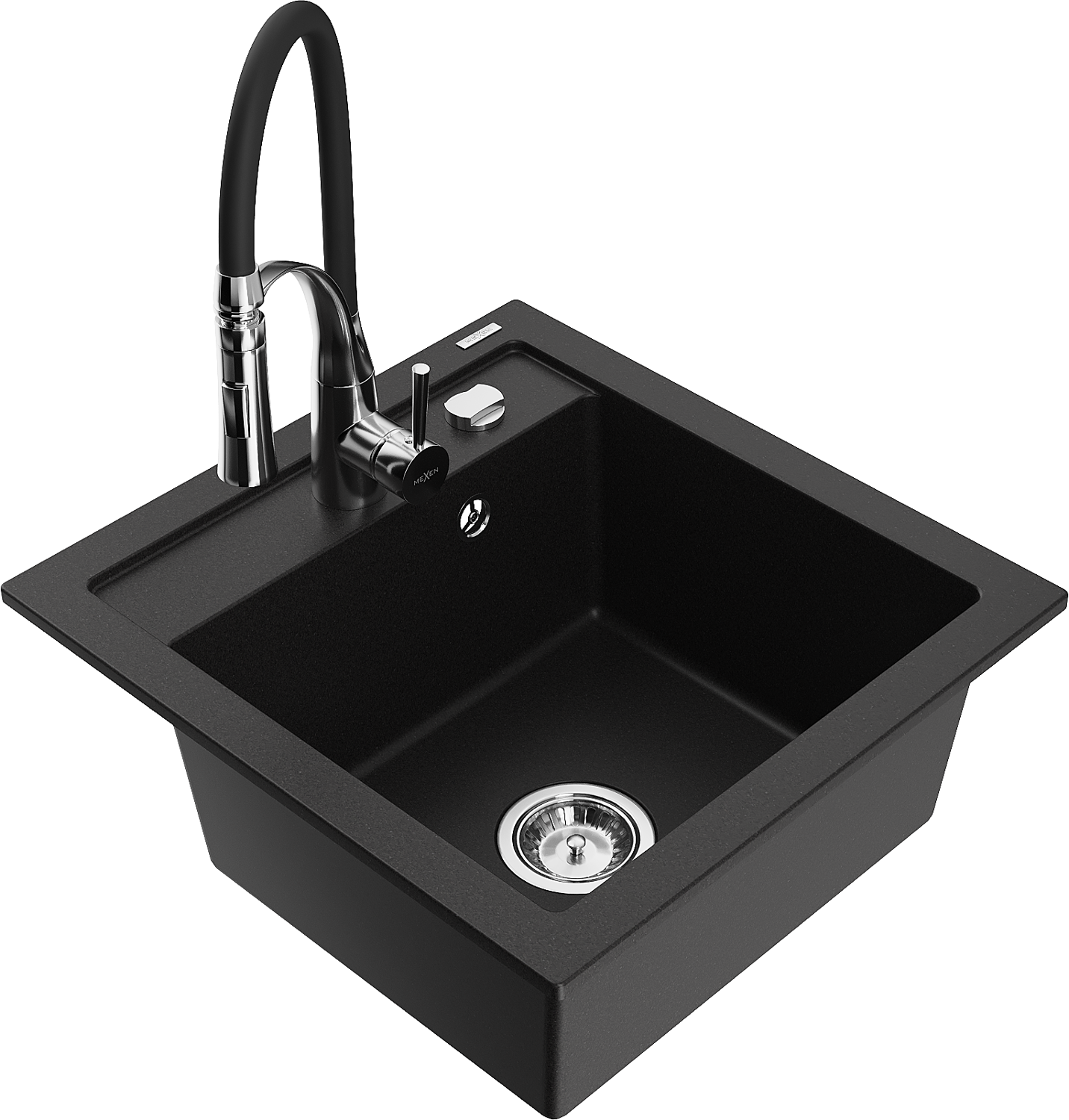 Mexen Vito гранитна мивка с 1 отделение с кухненски смесител Aster, черен - 6503-77-73450-07