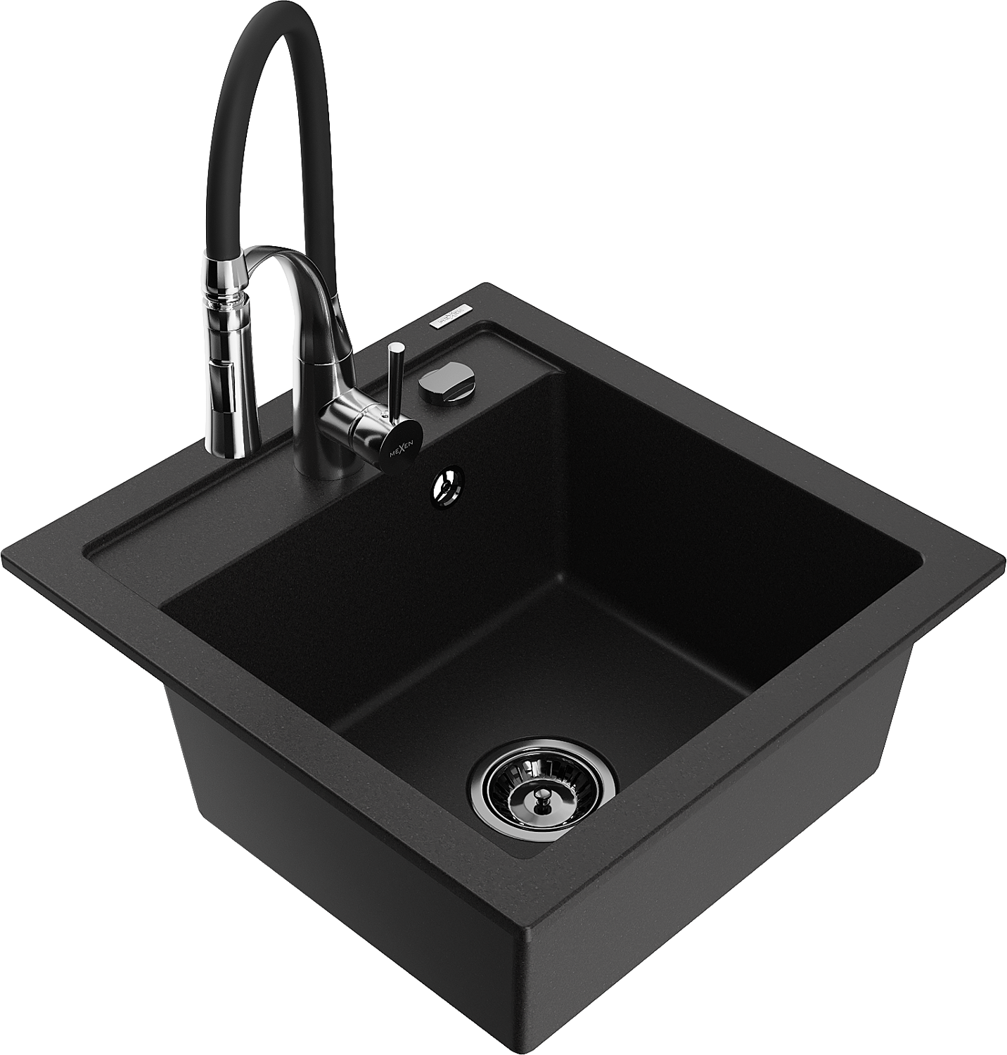 Mexen Vito гранитна кухненска мивка с 1 отделение и кухненски смесител Aster, черен - 6503-77-73450-07-B