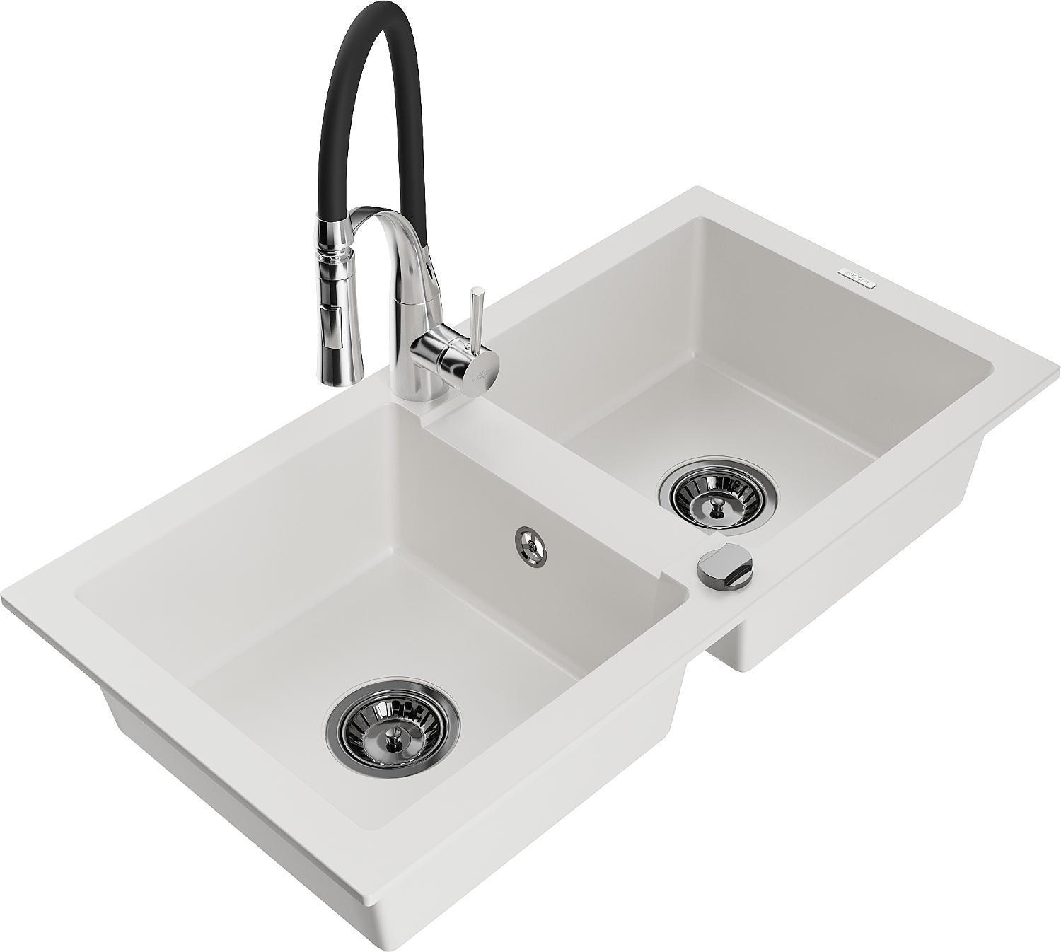 Миксери Mario гранитна мивка 2-коморна с кухненски смесител Aster, бял - 6504-20-73450-07-B