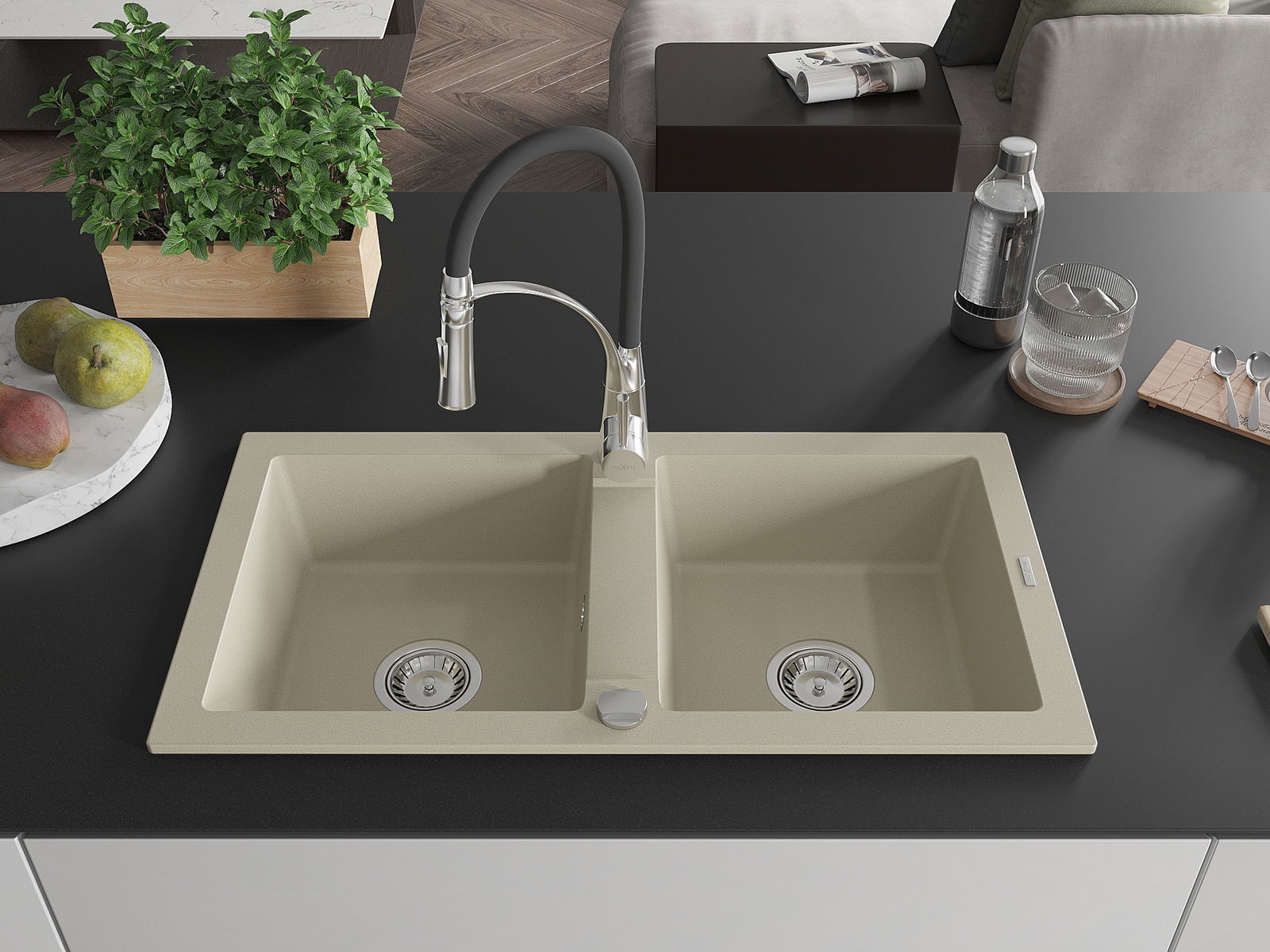 Повърхността на мивката е устойчива на петна и обезцветяване, благодарение на които е лесно да се почиства и запазва цвета си за дълго време. Естетически и практически допълващи всяка кухня.