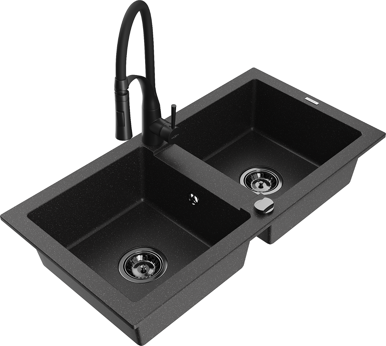 Mexen Mario гранитна мивка с 2 отделения и кухненски смесител Aster, черен/сребърен металик - 6504-73-73450-70-B