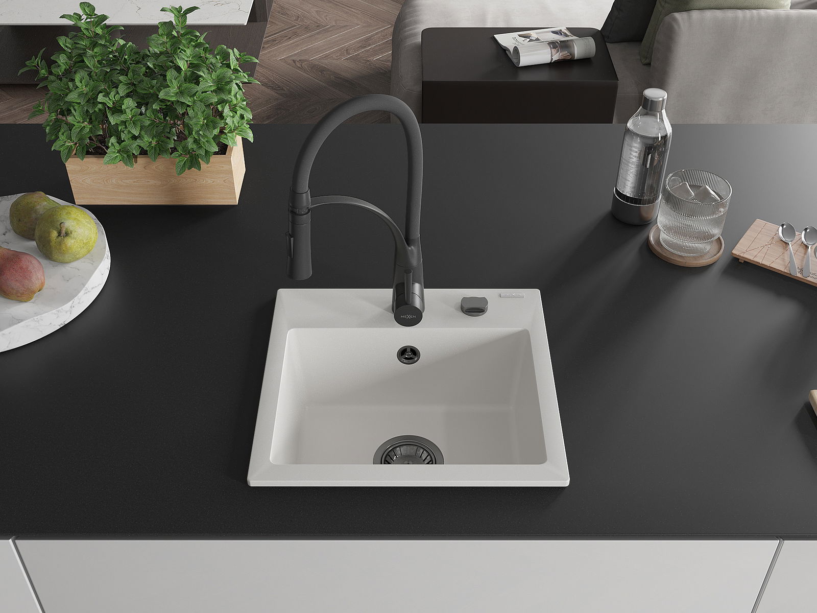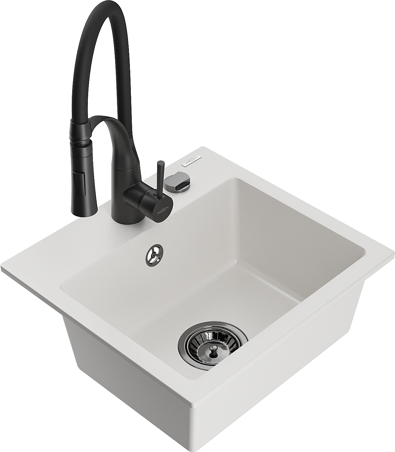 Mexen Milo гранитна мивка с една камера с кухненски смесител Aster, бял - 6505-20-73450-70-B