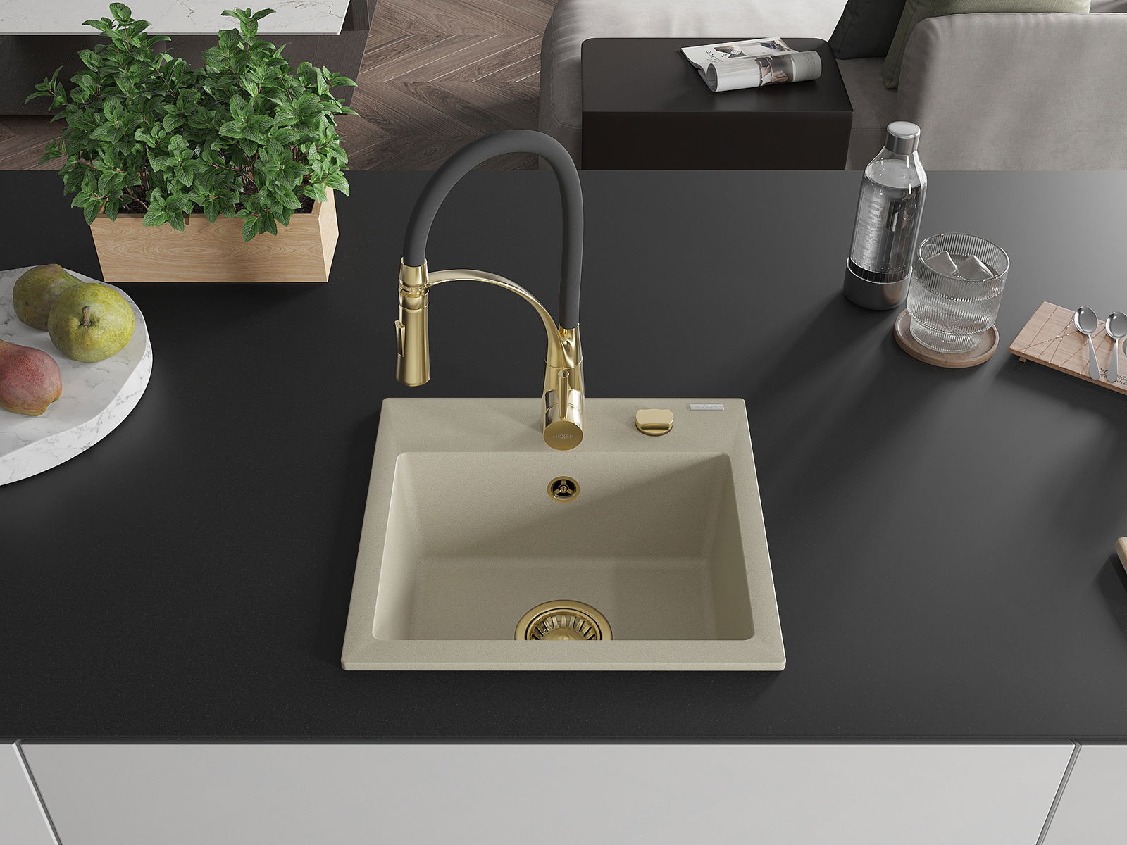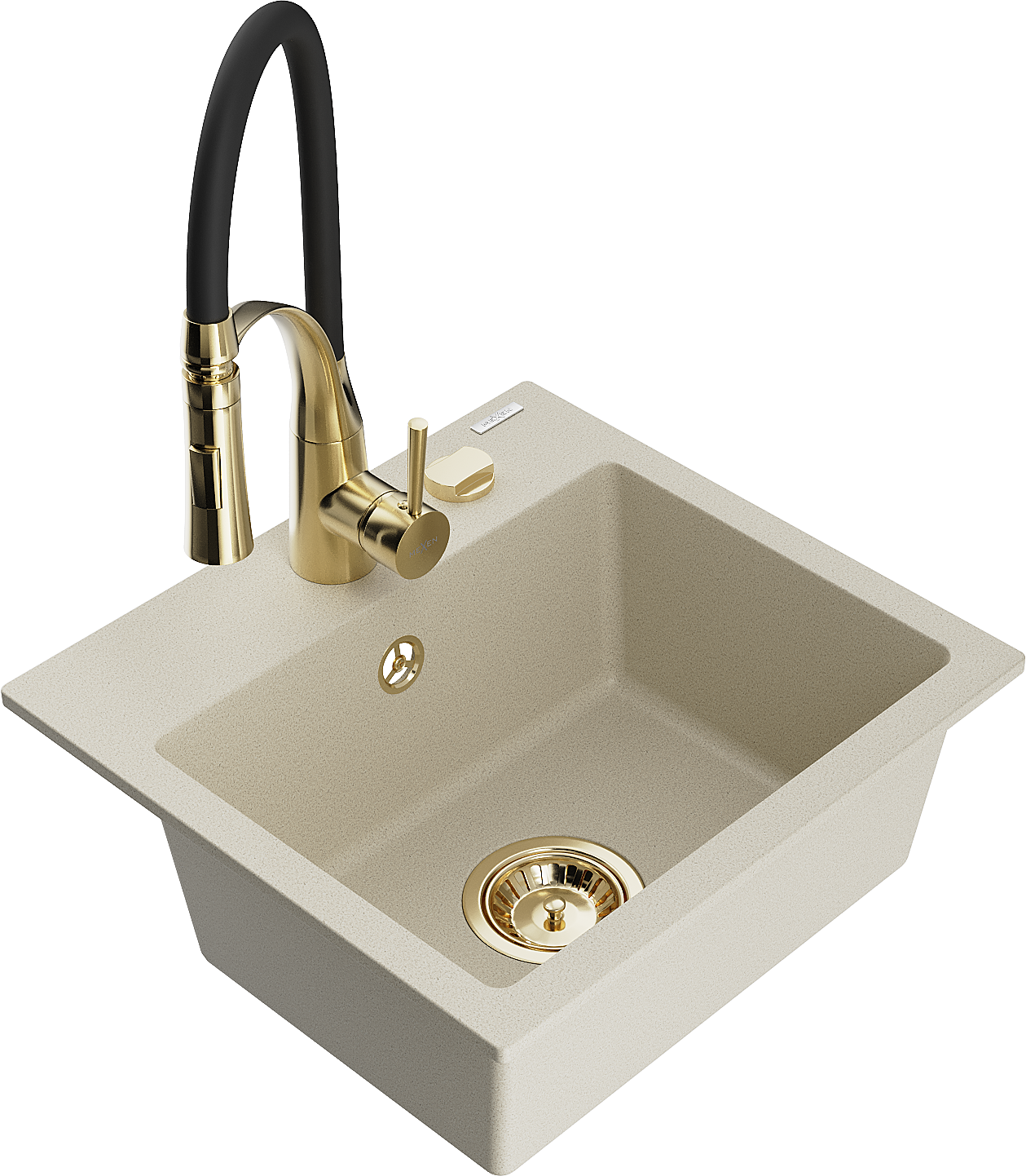 Mexen Milo гранитна мивка с 1 отделение с кухненски смесител Aster, бежов - 6505-69-73450-57-G