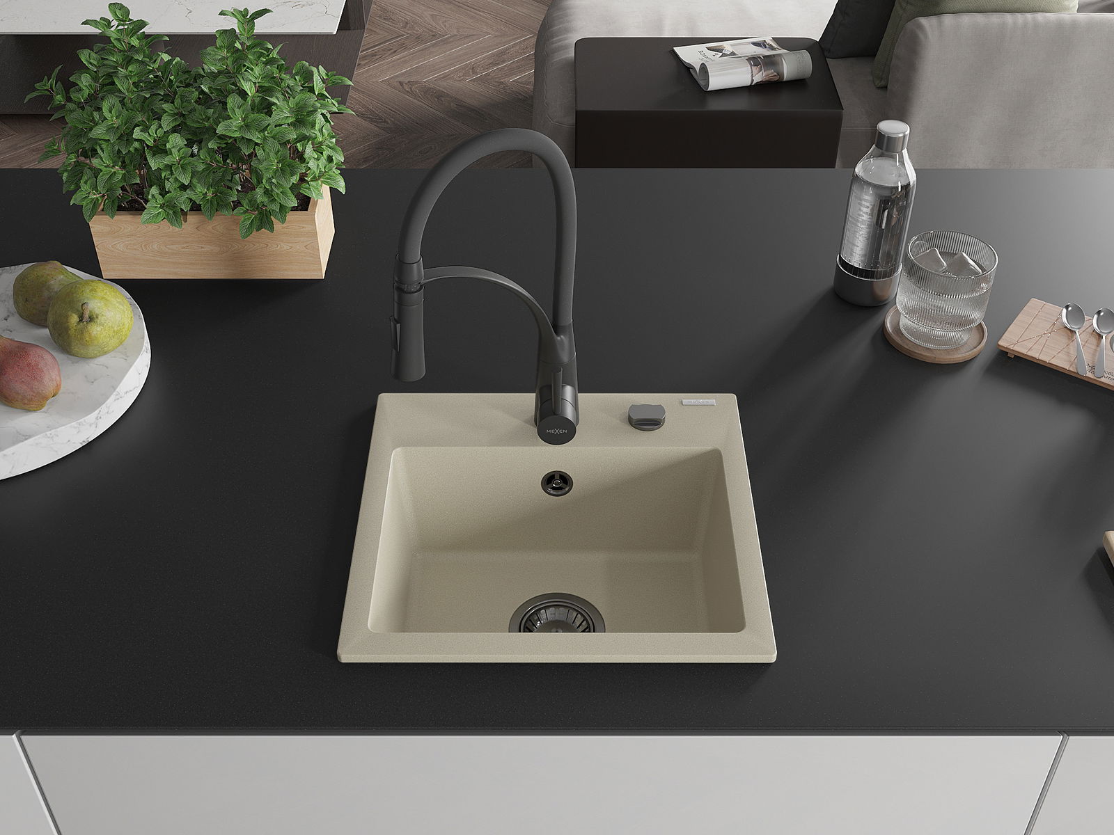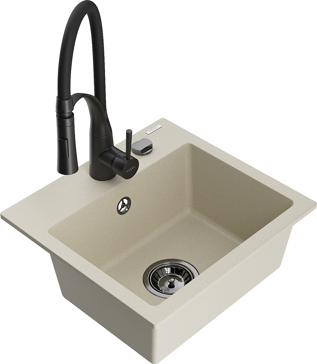 Mexen Milo единична мивка от гранит с кухненски смесител Aster, бежов - 6505-69-73450-70-B