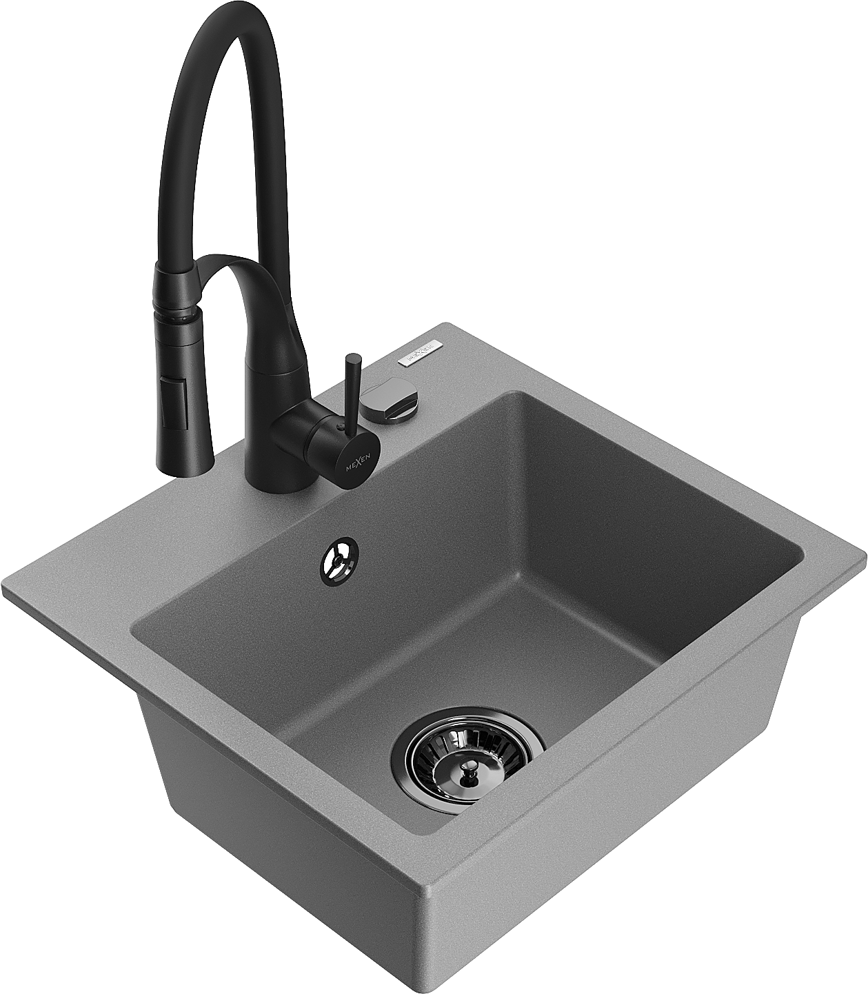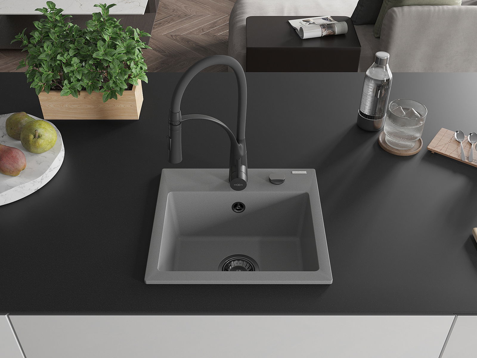 Mexen Milo Гранитна мивка с 1 отделение и кухненски смесител Aster, сив - 6505-71-73450-70-B