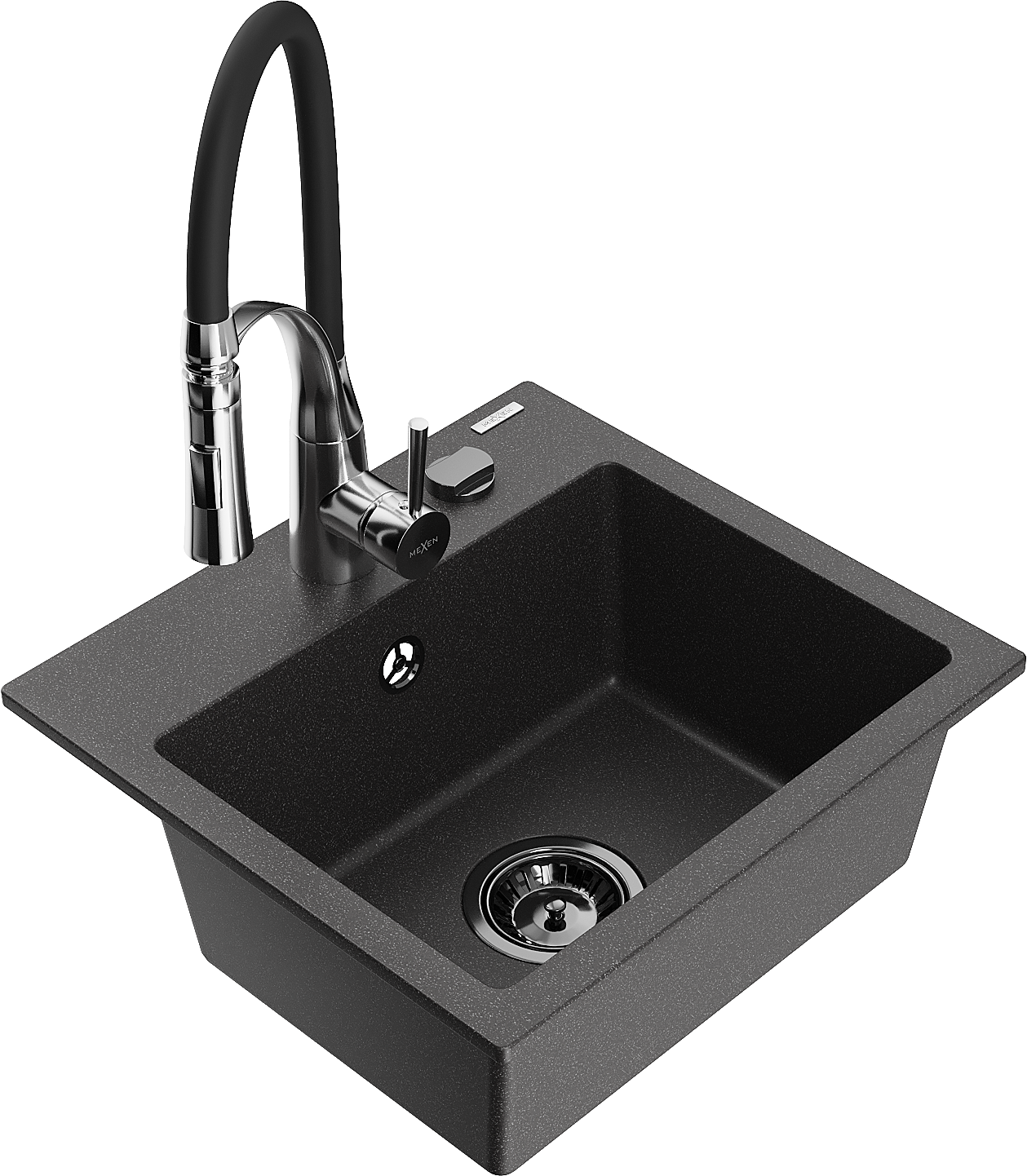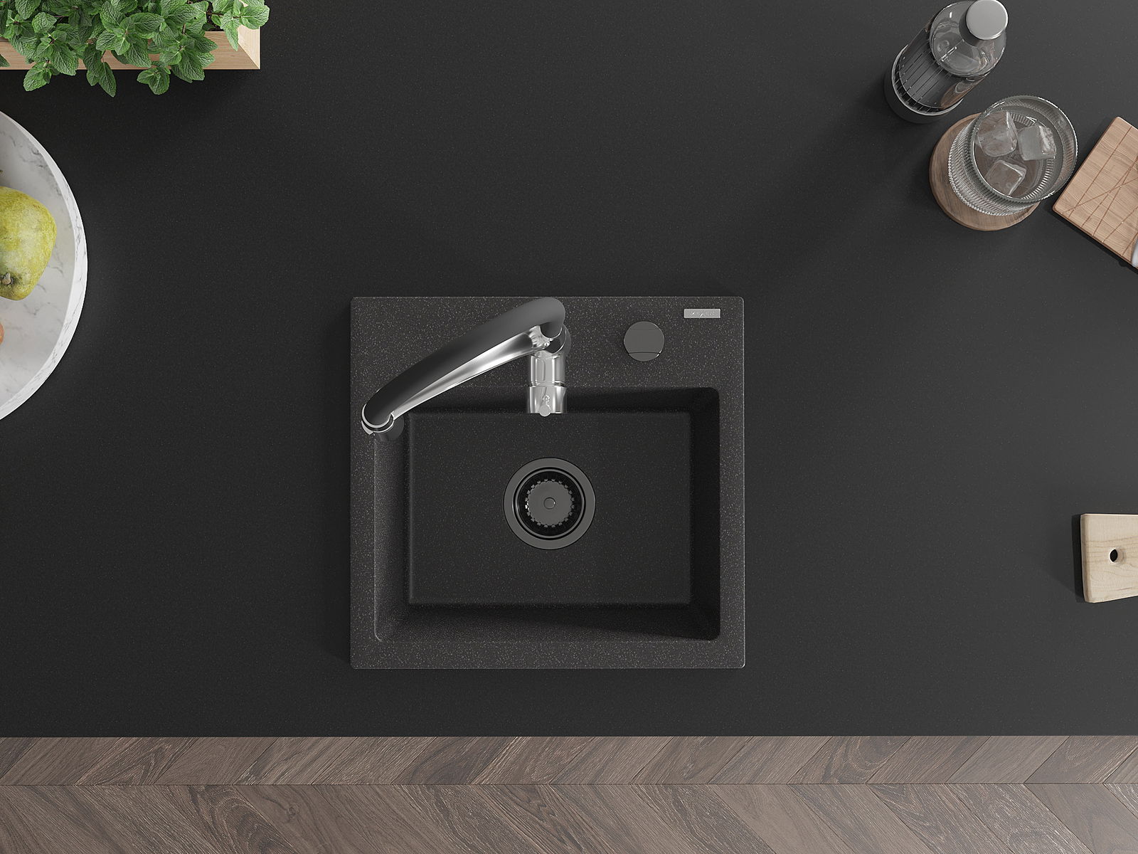 Mexen Milo гранитна мивка с 1 камера с кухненски смесител Aster, черен на пръски - 6505-76-73450-07-B