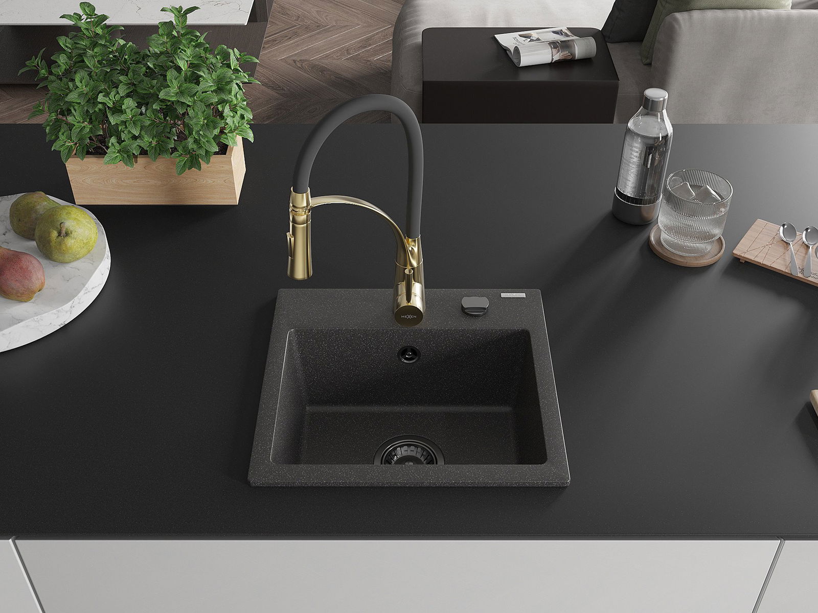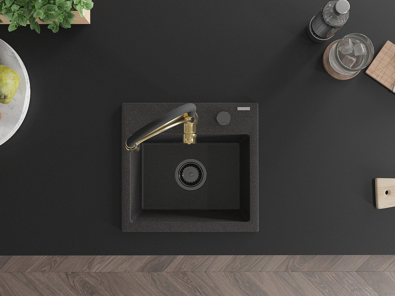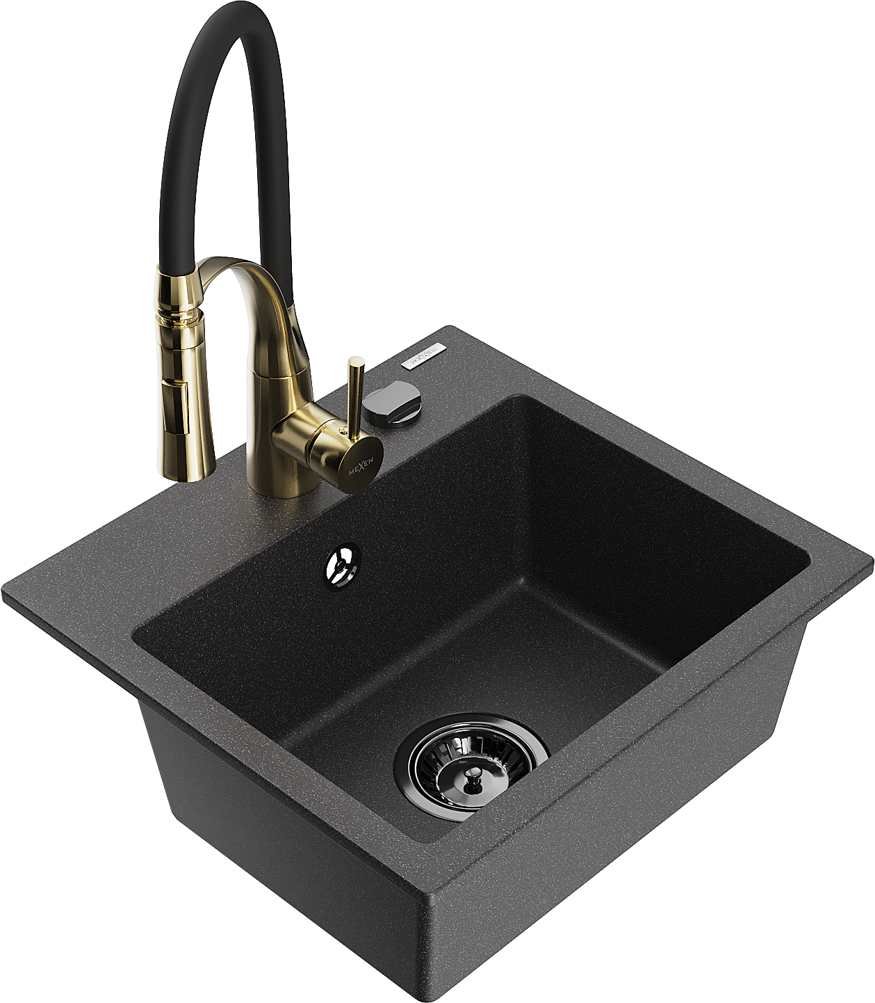 Mexen Milo гранитна мивка с 1 отделение с кухненски смесител Aster, черна на