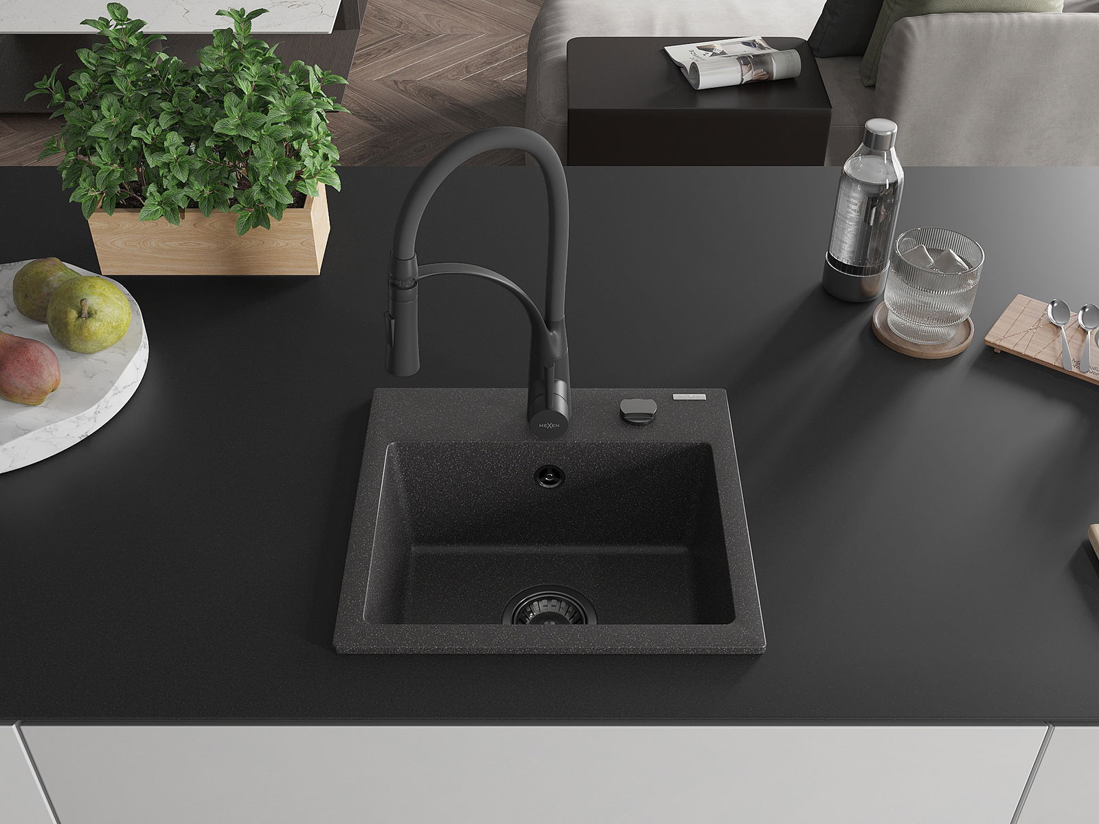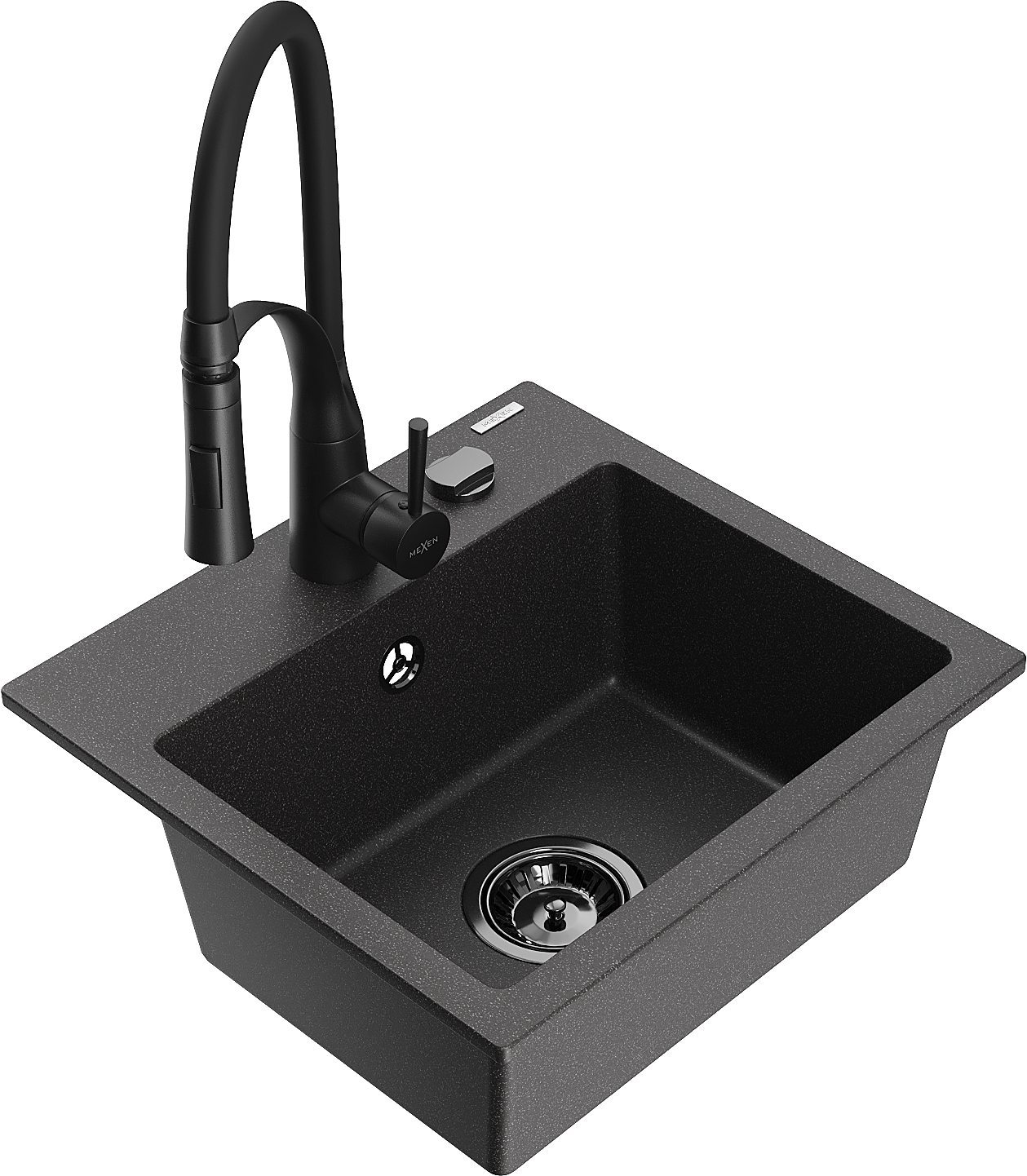 Mexen Milo гранитна мивка с 1 камера и кухненски смесител Aster, черно на точки - 6505-76-73450-70-B