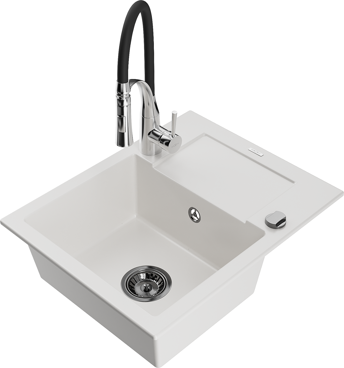 Mexen Enzo гранитна мивка с 1 отделение и отцедник и кухненски смесител Aster, бял - 6506-20-73450-07-B
