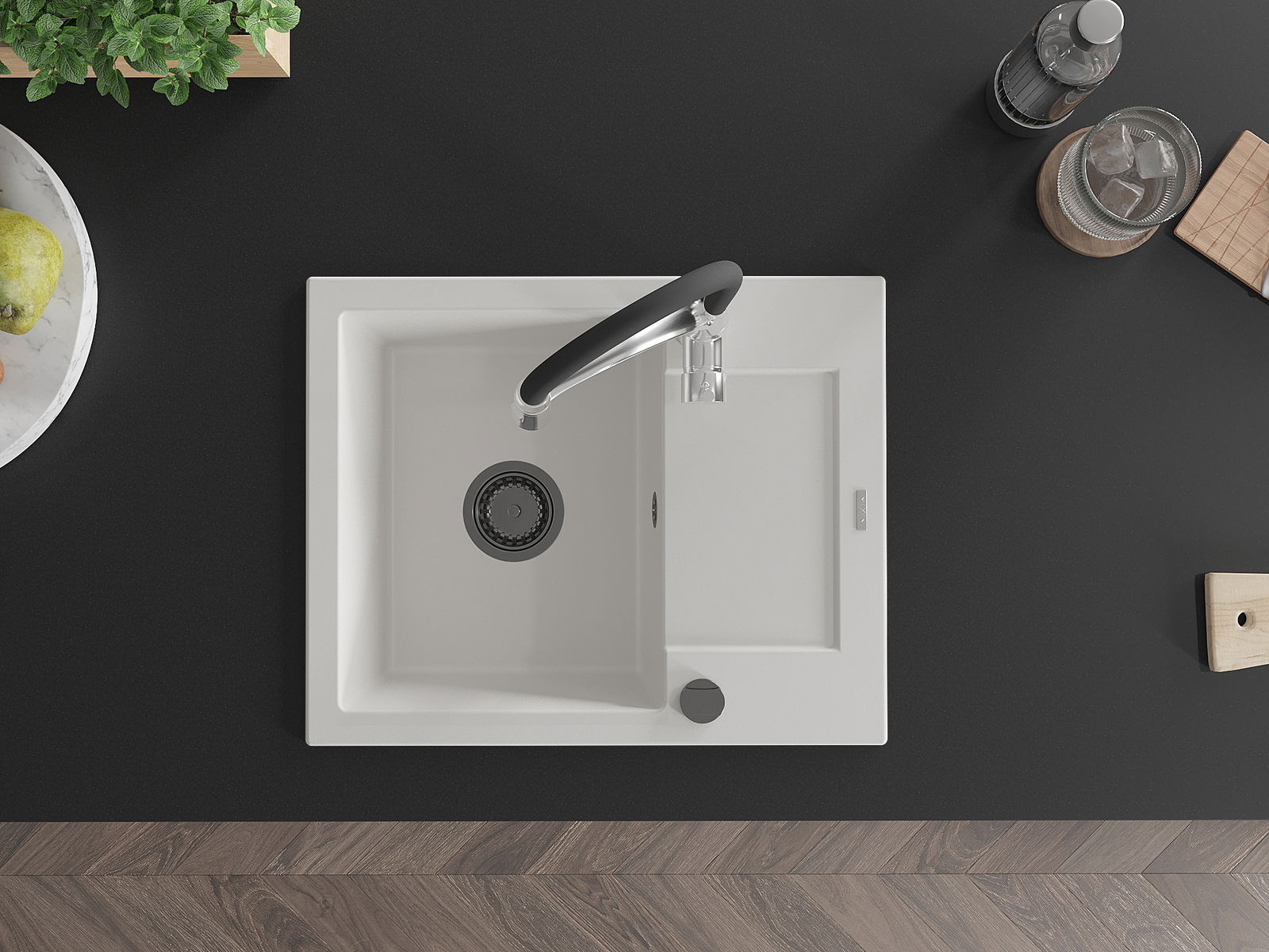 Мивката е направена от висококачествен гранит. Това е елегантно и най -вече практично допълнение към всяка кухня, независимо от нейния стил. Висококачествената и гранитна издръжливост осигуряват много години употреба.