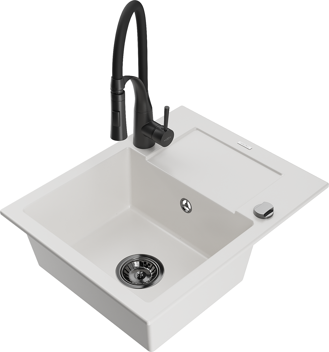 Mexen Enzo кухненска мивка от гранит с 1 отделение с дренаж и кухненска батерия Aster, бял - 6506-20-73450-70-B