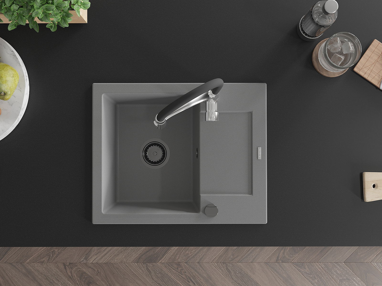 Mexen Enzo гранитна мивка с 1 отделение и сушилня, сив - 6506-71-73450-07-B