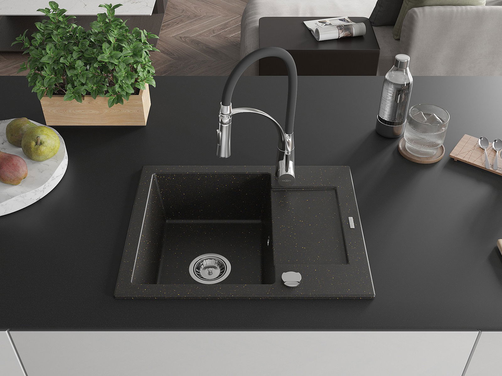 Mexen Enzo гранитна мивка с една камера с отцедник и кухненски смесител